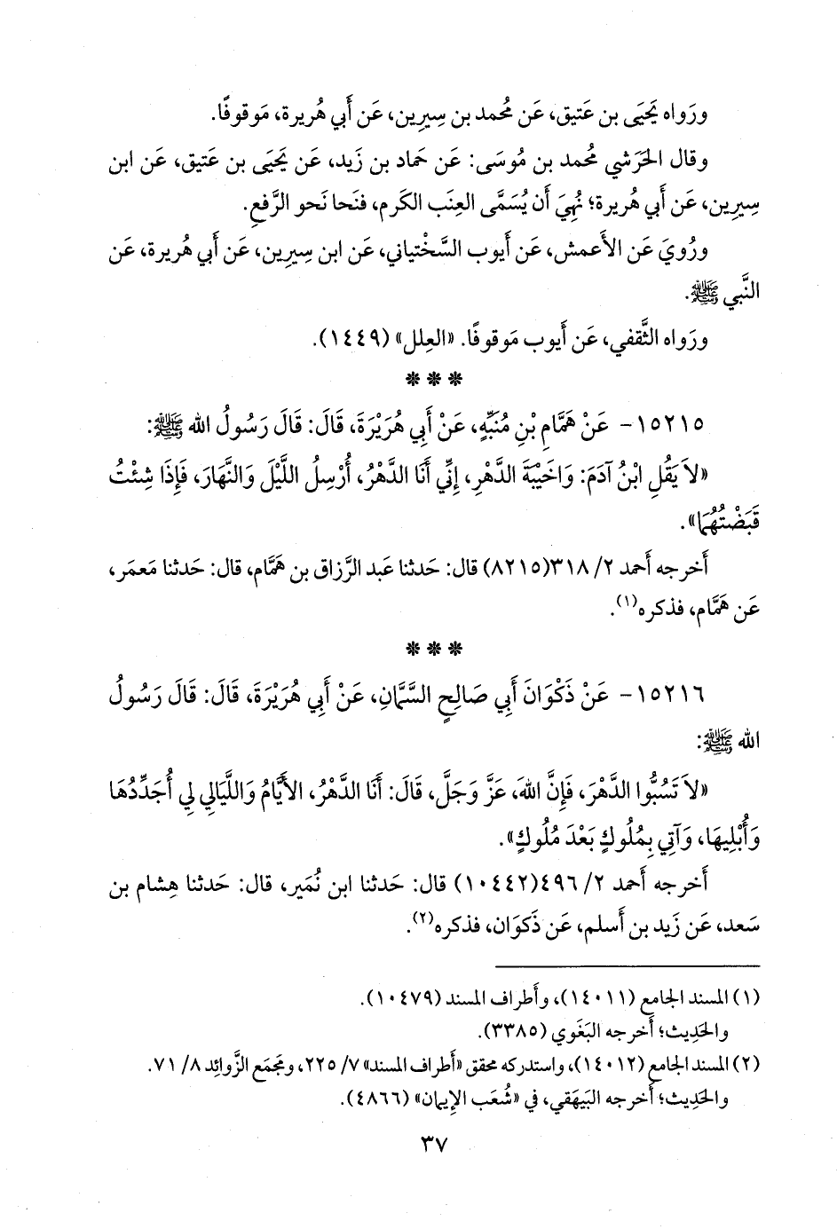 ١٥٢١٥ - عن همام بن مُنَبِّه، عن أبي هريرة، قال: قال رسول الله صَلى الله عَليه وسَلم: