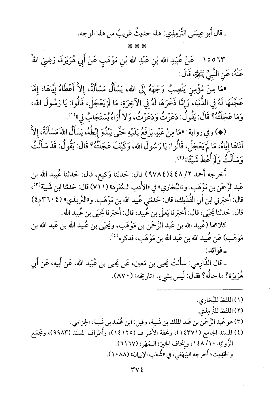أخرجه أحمد (٩٧٨٤) قال: حدثنا وكيع، قال: حدثنا عُبيد الله بن عبد الرَّحمَن بن مَوهَب. و «البخاري» في «الأدب المفرد» (٧١١) قال: حدثنا ابن شيبة (¬٣)، قال: أخبرني ابن أبي الفديك، قال: حدثني عُبيد الله بن مَوهَب. و «التِّرمِذي» (٣٦٠٤ م ٤) قال: حدثنا يحيى، قال: أخبرنا يَعلى بن عبيد، قال: أخبرنا يحيى بن عُبيد الله.