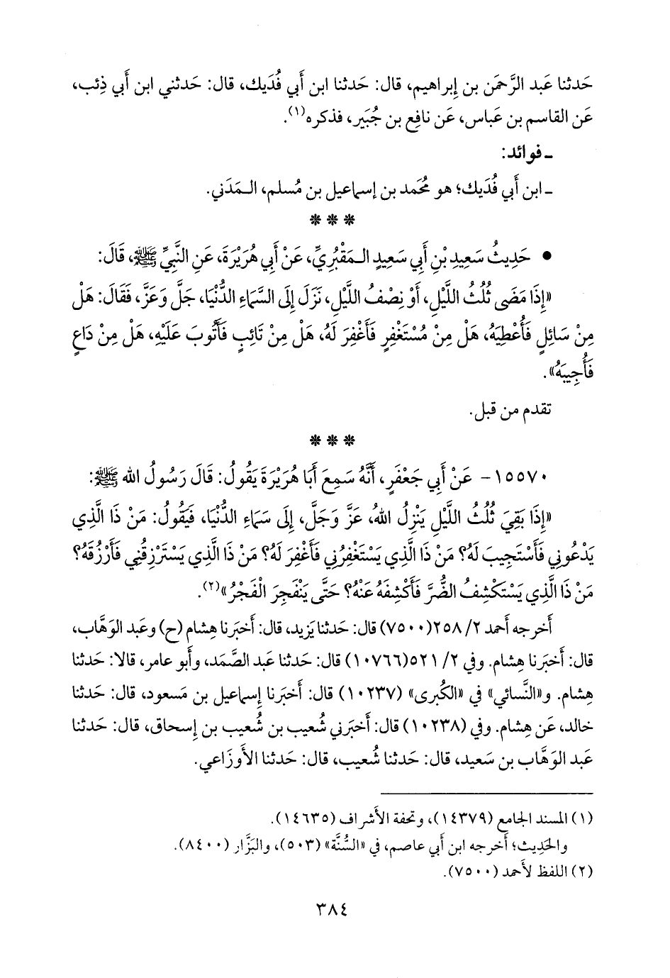 (¬٢) المسند الجامع (١٤٣٧٧)، وتحفة الأشراف (١٤٨٧٤)، وأطراف المسند (١٠٥٥١)، ومَجمَع الزوائد ١٠/ ١٥٤.