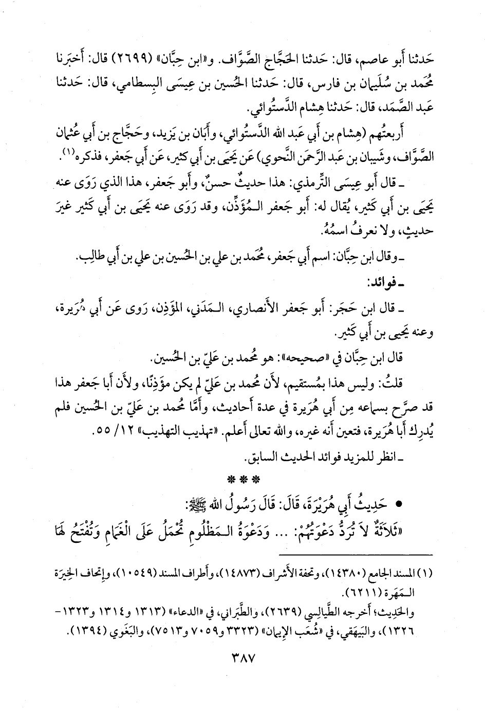 - تعقيبًا على قول ابن حِبان: اسم أَبي جعفر، محمد بن علي بن الحسين؛