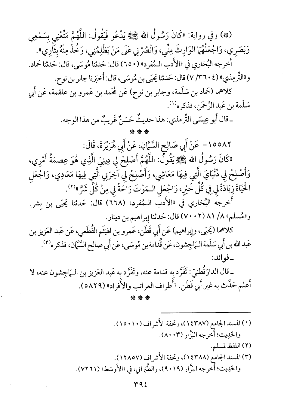 (¬٢) المسند الجامع (١٤٣٨٨)، وتحفة الأشراف (١٢٨٥٧).