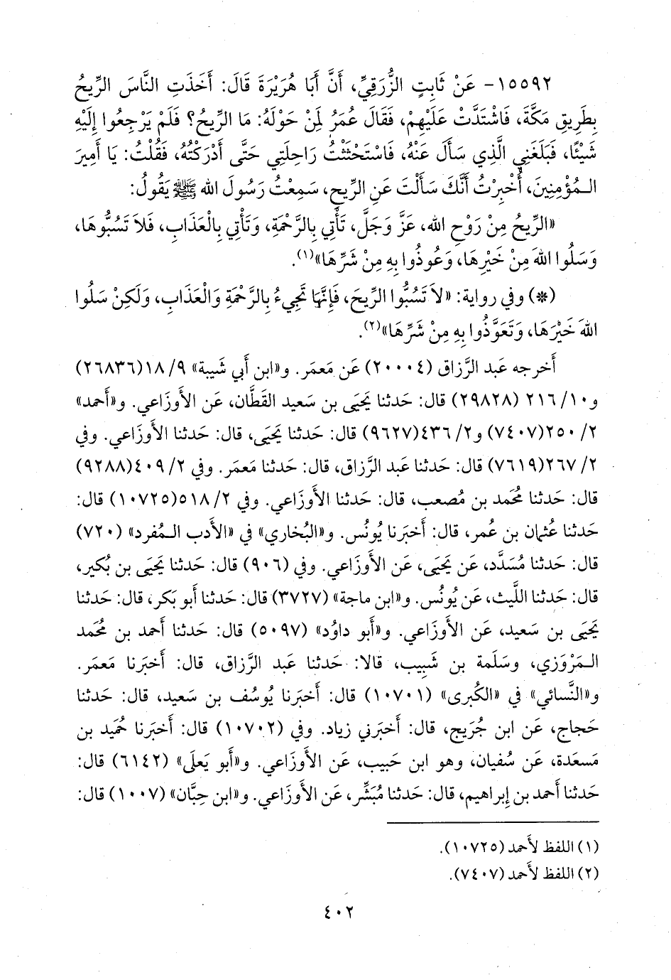 أخرجه عبد الرزاق (٢٠٠٠٤) عن مَعمَر. و «ابن أبي شيبة» (٢٦٨٣٦) و ١٠/ ٢١٦ (٢٩٨٢٨) قال: حدثنا يحيى بن سعيد القطان، عن الأوزاعي. و «أحمد» ٢/ ٢٥٠ (٧٤٠٧) و ٢/ ٤٣٦ (٩٦٢٧) قال: حدثنا يحيى، قال: حدثنا الأوزاعي. وفي ٢/ ٢٦٧ (٧٦١٩) قال: حدثنا عبد الرزاق، قال: حدثنا مَعمَر. وفي ٢/ ٤٠٩ (٩٢٨٨) قال: حدثنا محمد بن مصعب، قال: حدثنا الأوزاعي.