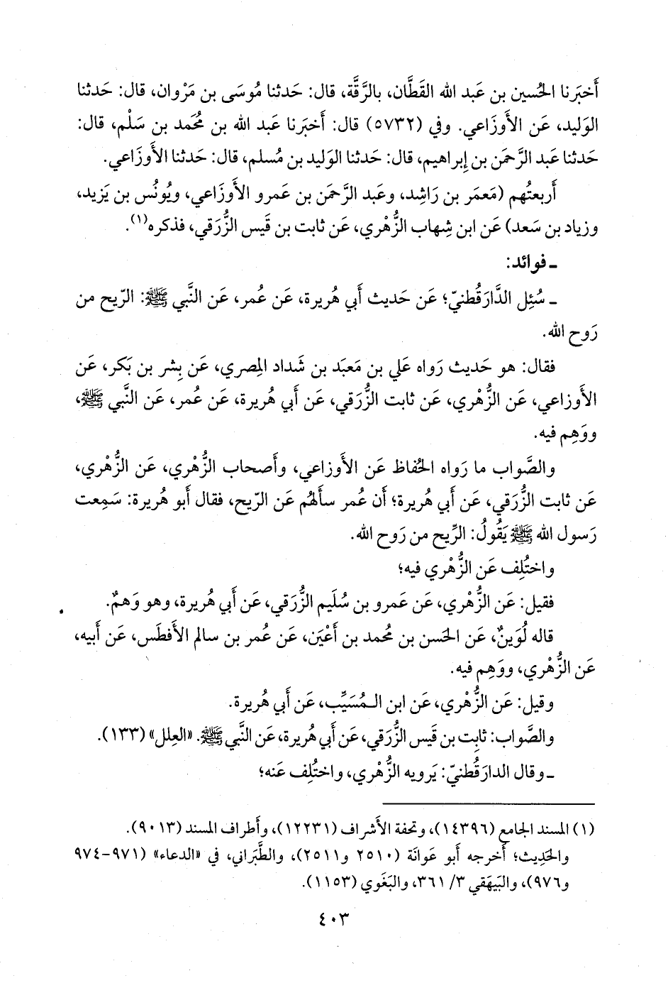 - سئل الدارقُطني؛ عن حديث أبي هريرة، عن عمر، عن النبي صَلى الله عَليه وسَلم: الريح من روح الله.