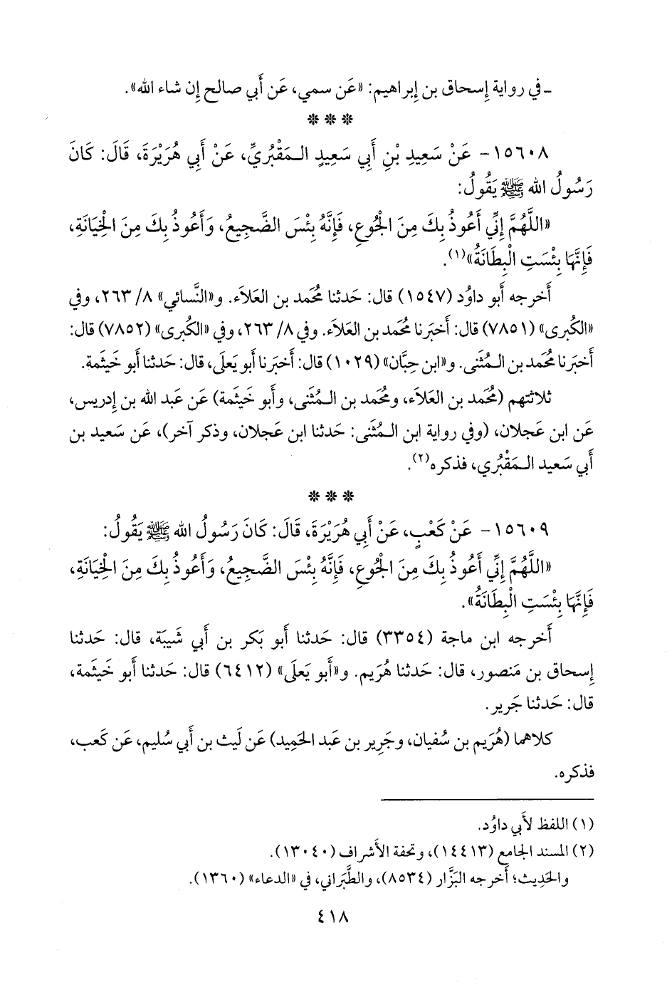 ١٥٦٠٨ - عن سعيد بن أبي سعيد المَقبُري، عن أبي هريرة، قال: كان رسول الله صَلى الله عَليه وسَلم يقول: