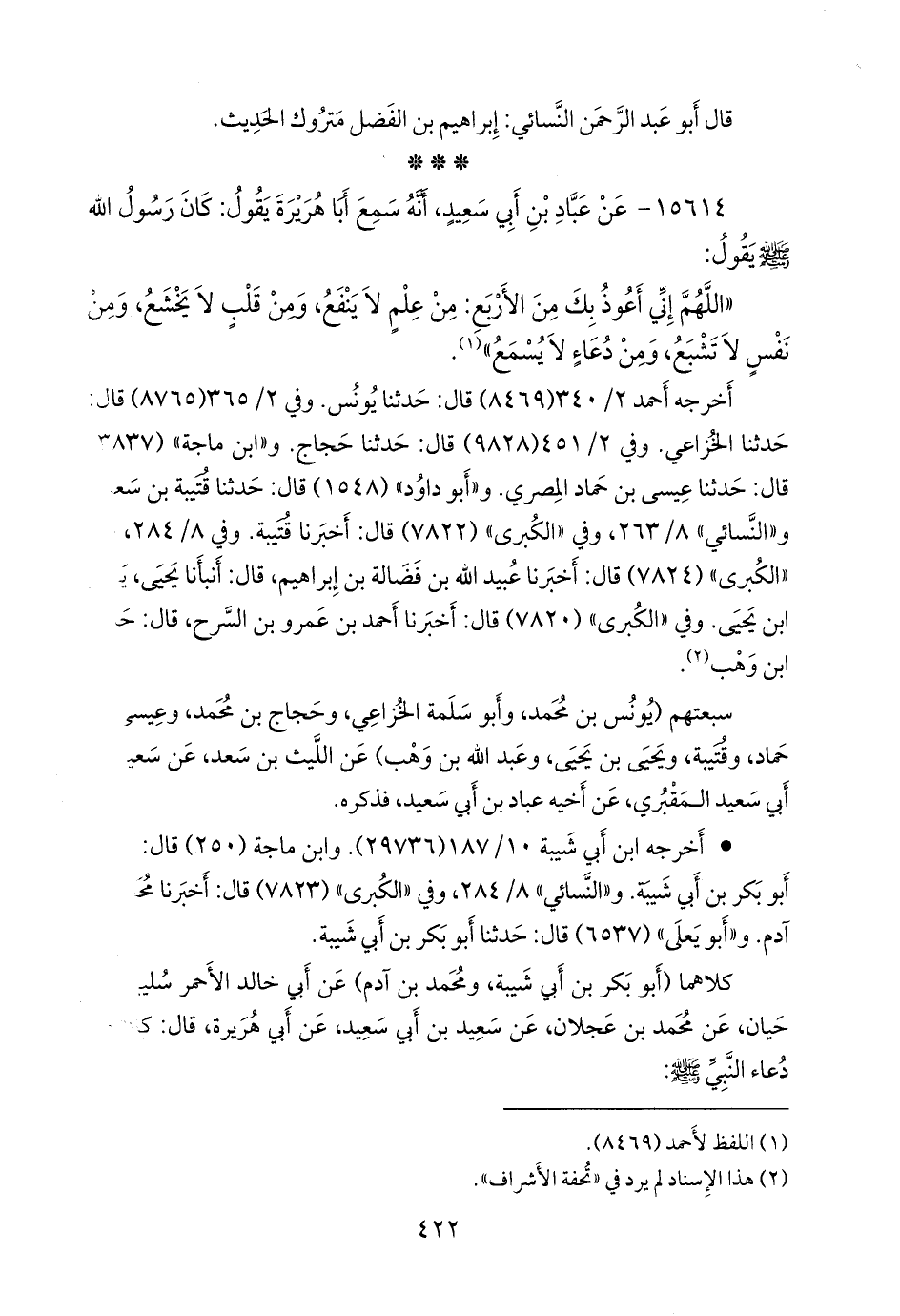 (¬٢) المسند الجامع (١٤٤١٩)، وتحفة الأشراف (١٣٠٤٦ و ١٣٥٤٩)، وأطراف المسند (٩٧٠١).