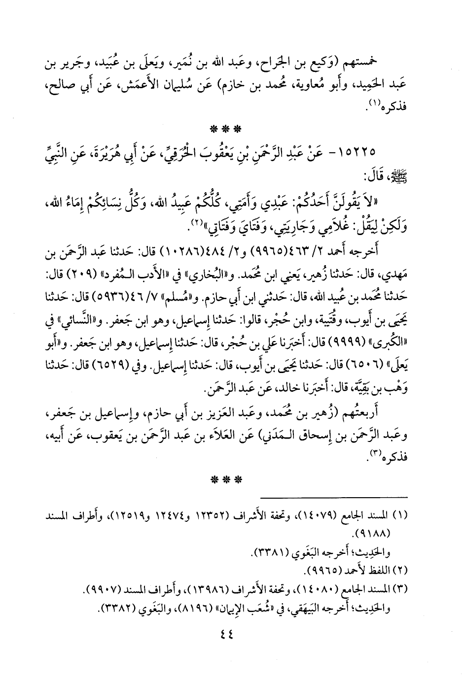 (¬٢) المسند الجامع (١٤٠٨٠)، وتحفة الأشراف (١٣٩٨٦)، وأطراف المسند (٩٩٠٧).