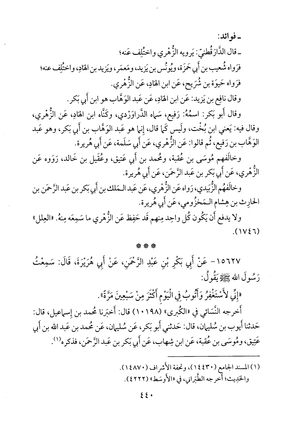 ويُقال: أَبو بكر اسمُه رُفيع، سَماه الدَّراوَرْدي، وكَنَّاه ابن الهاد، عن الزُّهْري.