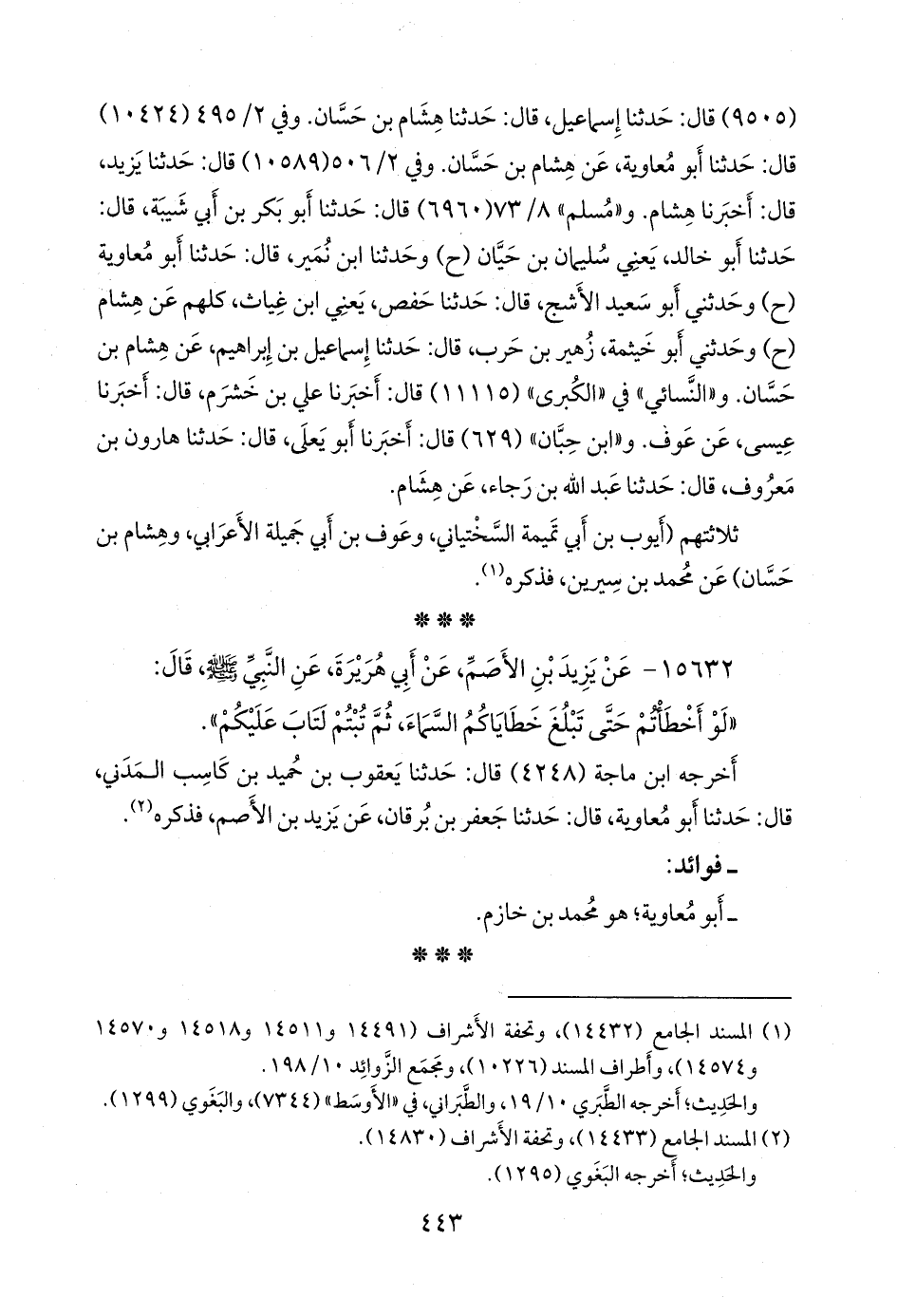 (¬١) المسند الجامع (١٤٤٣٣)، وتحفة الأشراف (١٤٨٣٠).