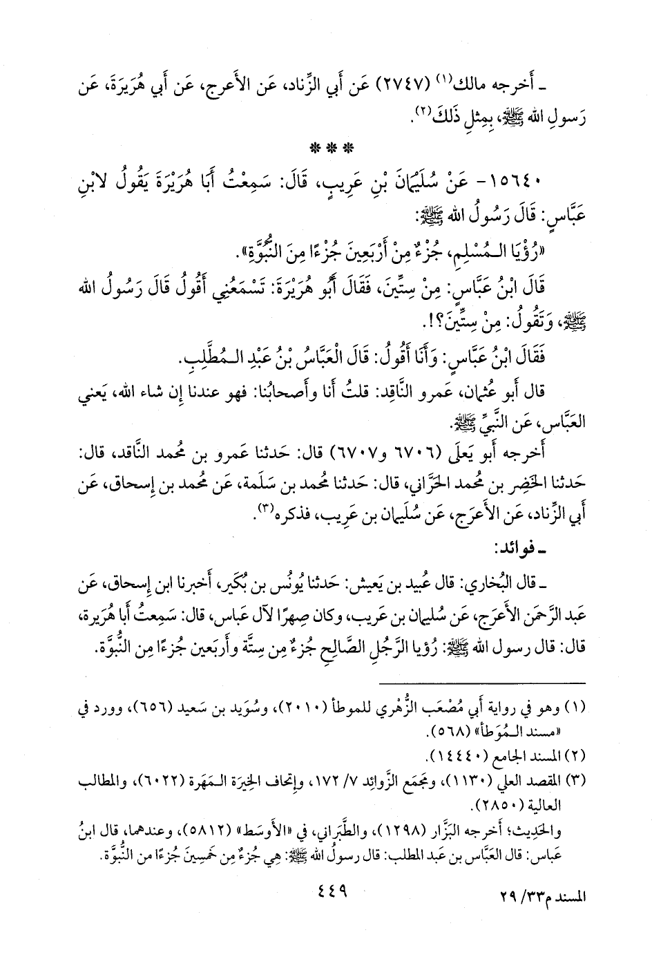 فحدثت به ابن عباس، فقال: قال العباس بن عبد المطلب: قال رسول الله صَلى الله عَليه وسَلم: هي جزء من خمسين جزءا من النبوة. «التاريخ الكبير» ٧/ ٢.