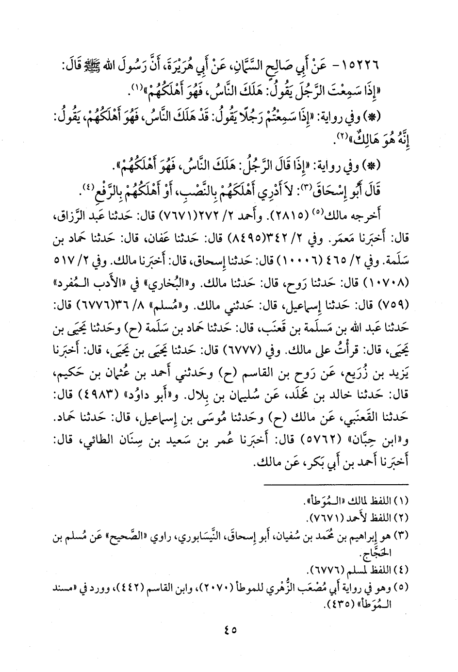 - وفي رواية: «إذا سمعتم رجلا يقول: قد هلك الناس، فهو أهلكهم، يقول: إنه هو هالك» (¬٢).