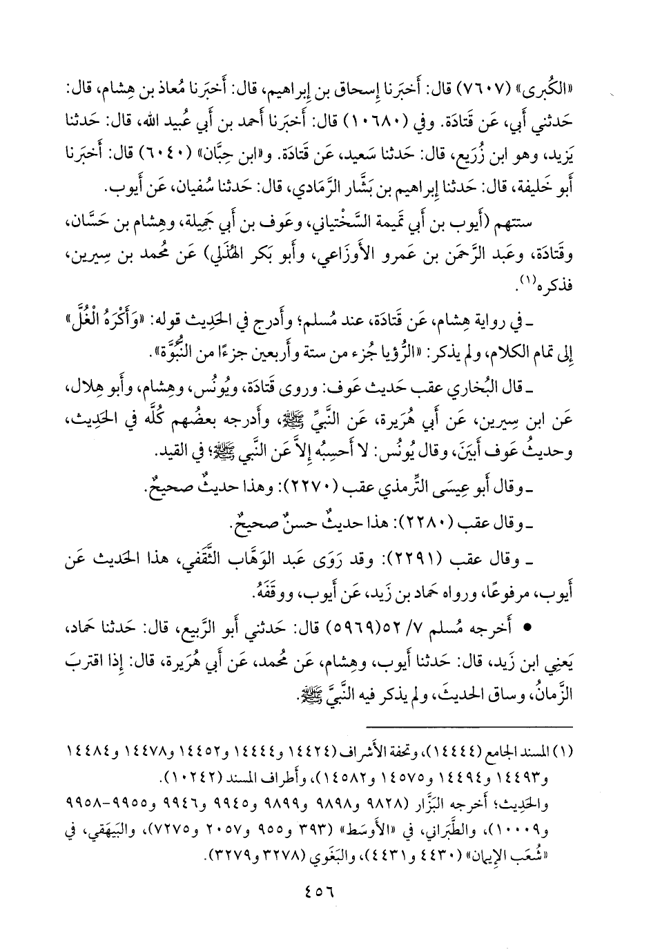 ستتهم (أيوب بن أبي تميمة السَّخْتِياني، وعوف بن أبي جميلة، وهشام بن حسان، وقتادة، وعبد الرَّحمَن بن عَمرو الأوزاعي، وأَبو بكر الهذلي) عن محمد بن سِيرين، فذكره (¬١).