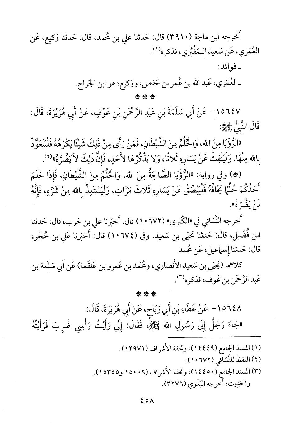 (¬٢) المسند الجامع (١٤٤٥٠)، وتحفة الأشراف (١٥٠٠٩ و ١٥٣٥٥).