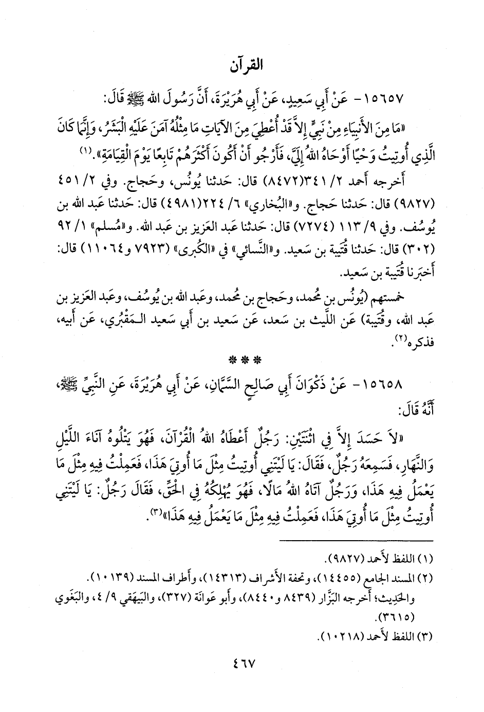 (¬٢) المسند الجامع (١٤٤٥٥)، وتحفة الأشراف (١٤٣١٣)، وأطراف المسند (١٠١٣٩).