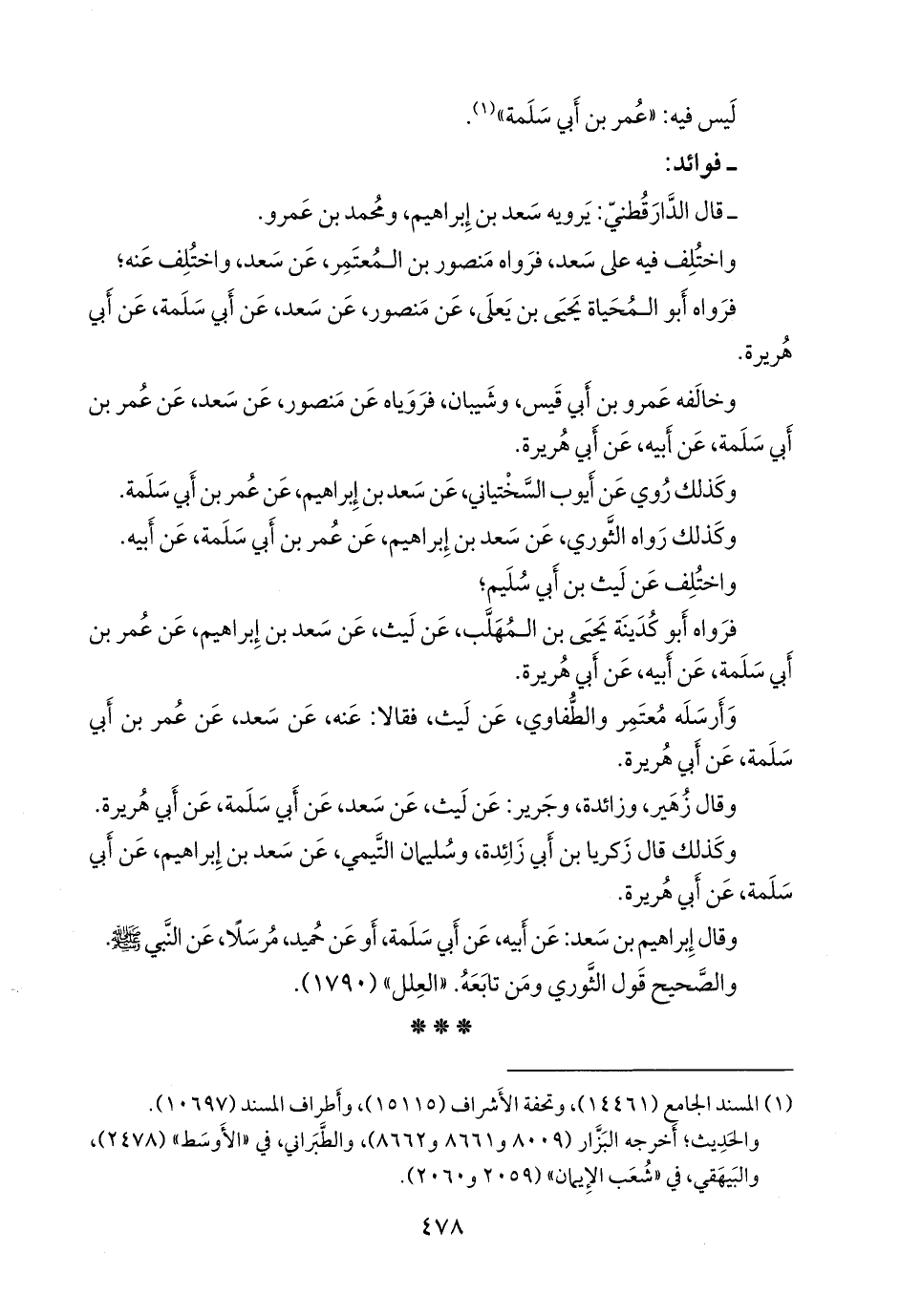- قال الدارقُطني: يرويه سعد بن إبراهيم، ومحمد بن عَمرو.