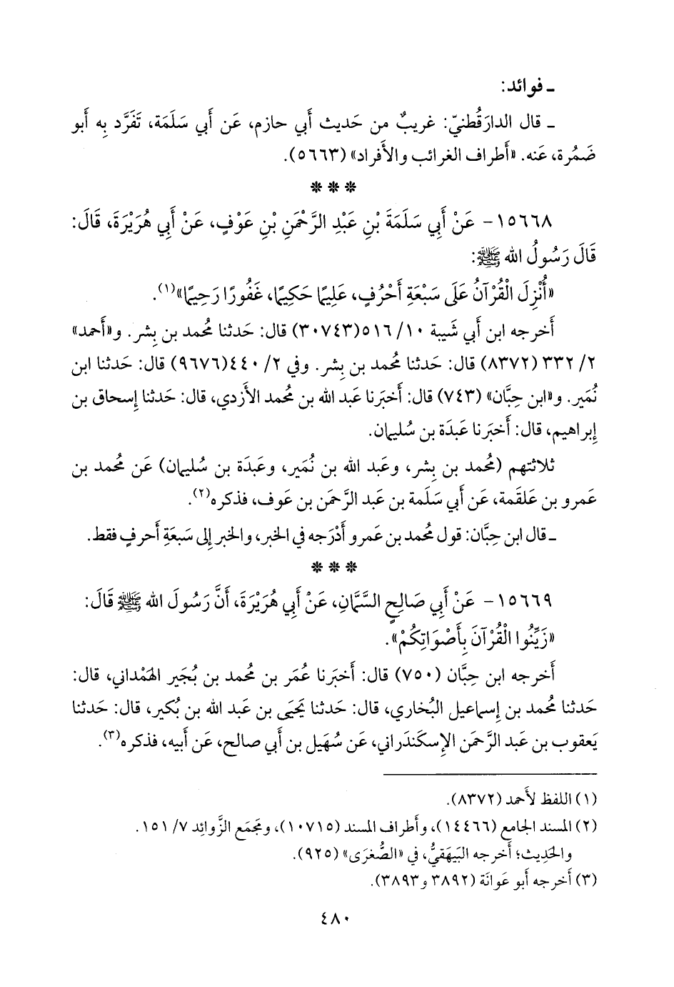 - قال ابن حبان: قول محمد بن عَمرو أدرجه في الخبر، والخبر إلى سبعة أحرف فقط.