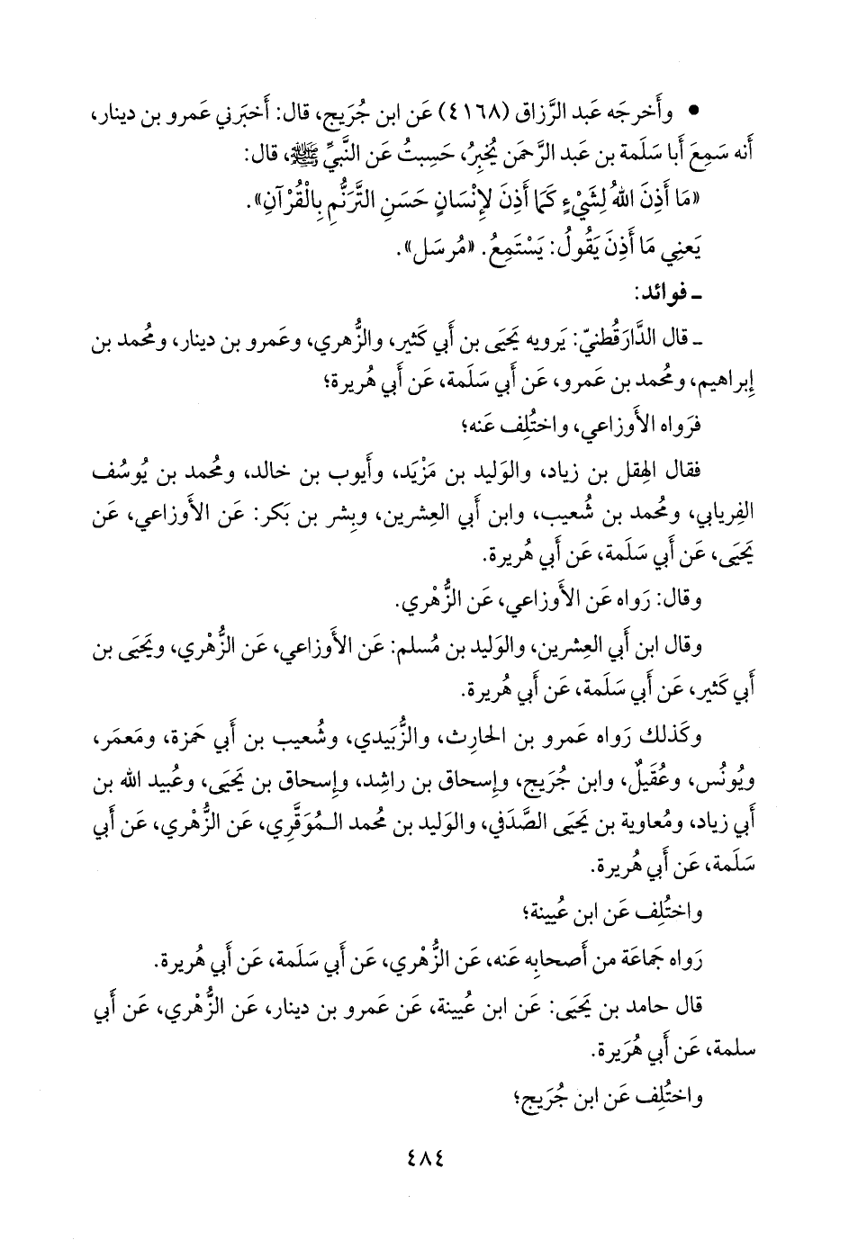 - قال الدارقُطني: يرويه يحيى بن أبي كثير، والزُّهْري، وعَمرو بن دينار، ومحمد بن إبراهيم، ومحمد بن عَمرو، عن أبي سلمة، عن أبي هريرة؛
