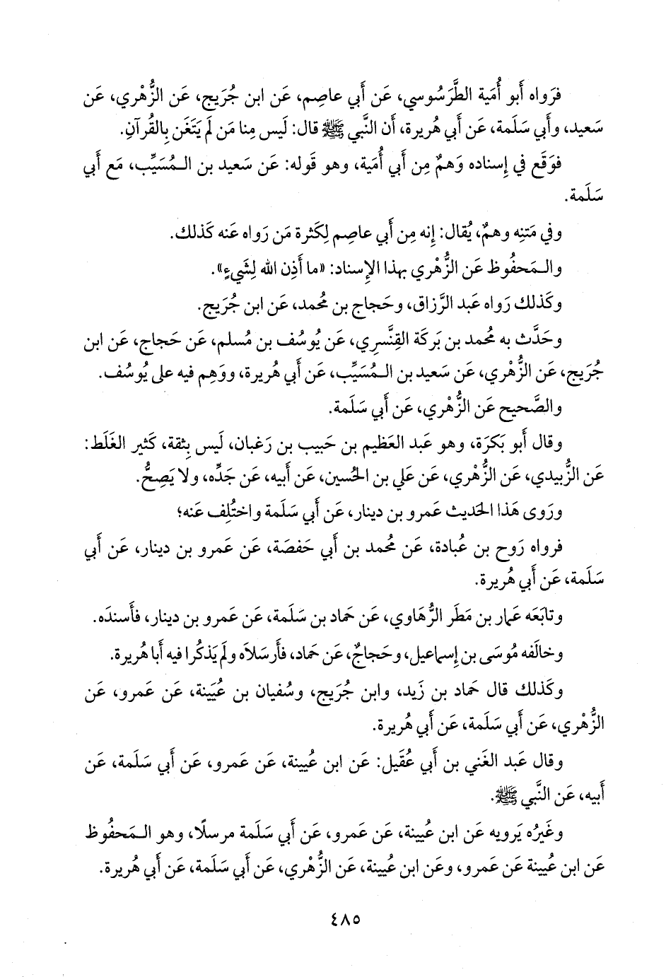 وغيره يرويه عن ابن عُيينة، عن عَمرو، عن أبي سلمة مرسلا، وهو المحفوظ عن ابن عُيينة عن عَمرو، وعن ابن عُيينة، عن الزُّهْري، عن أبي سلمة، عن أبي هريرة.
