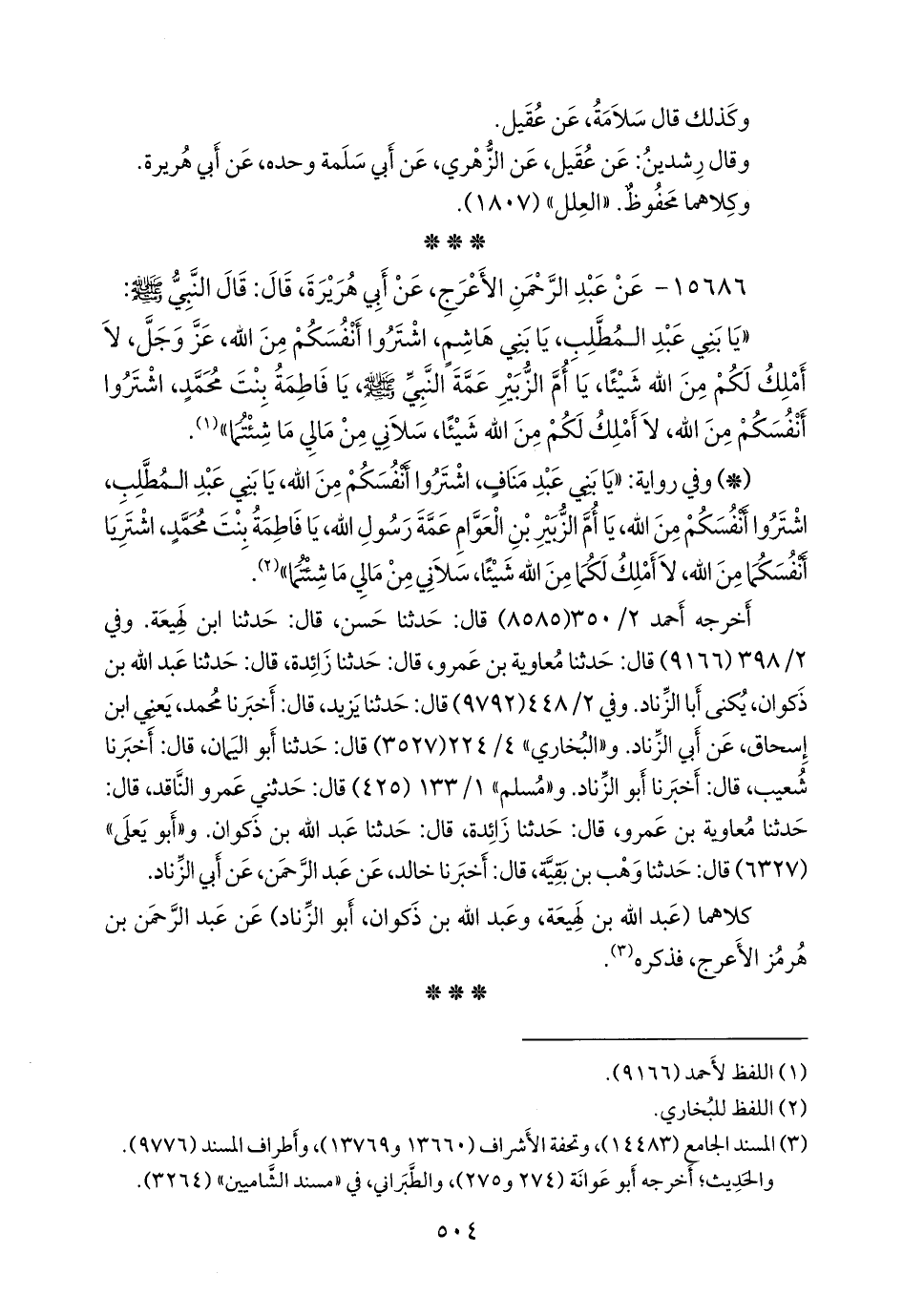 (¬٣) المسند الجامع (١٤٤٨٣)، وتحفة الأشراف (١٣٦٦٠ و ١٣٧٦٩)، وأطراف المسند (٩٧٧٦).
