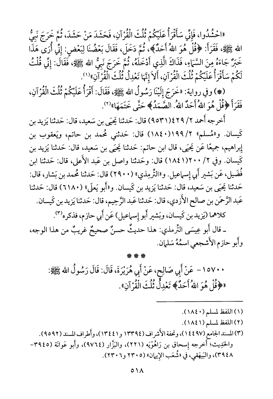 «{قُلْ هُوَ اللهُ أَحَدٌ} تعدل ثلث القرآن».