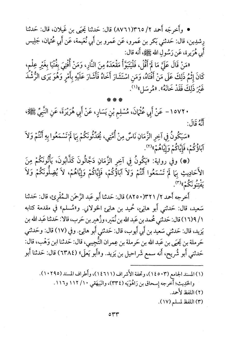 (¬٣) المسند الجامع (١٤٥٠٤)، وتحفة الأشراف (١٤٦١٢)، وأطراف المسند (١٠٢٩٦).