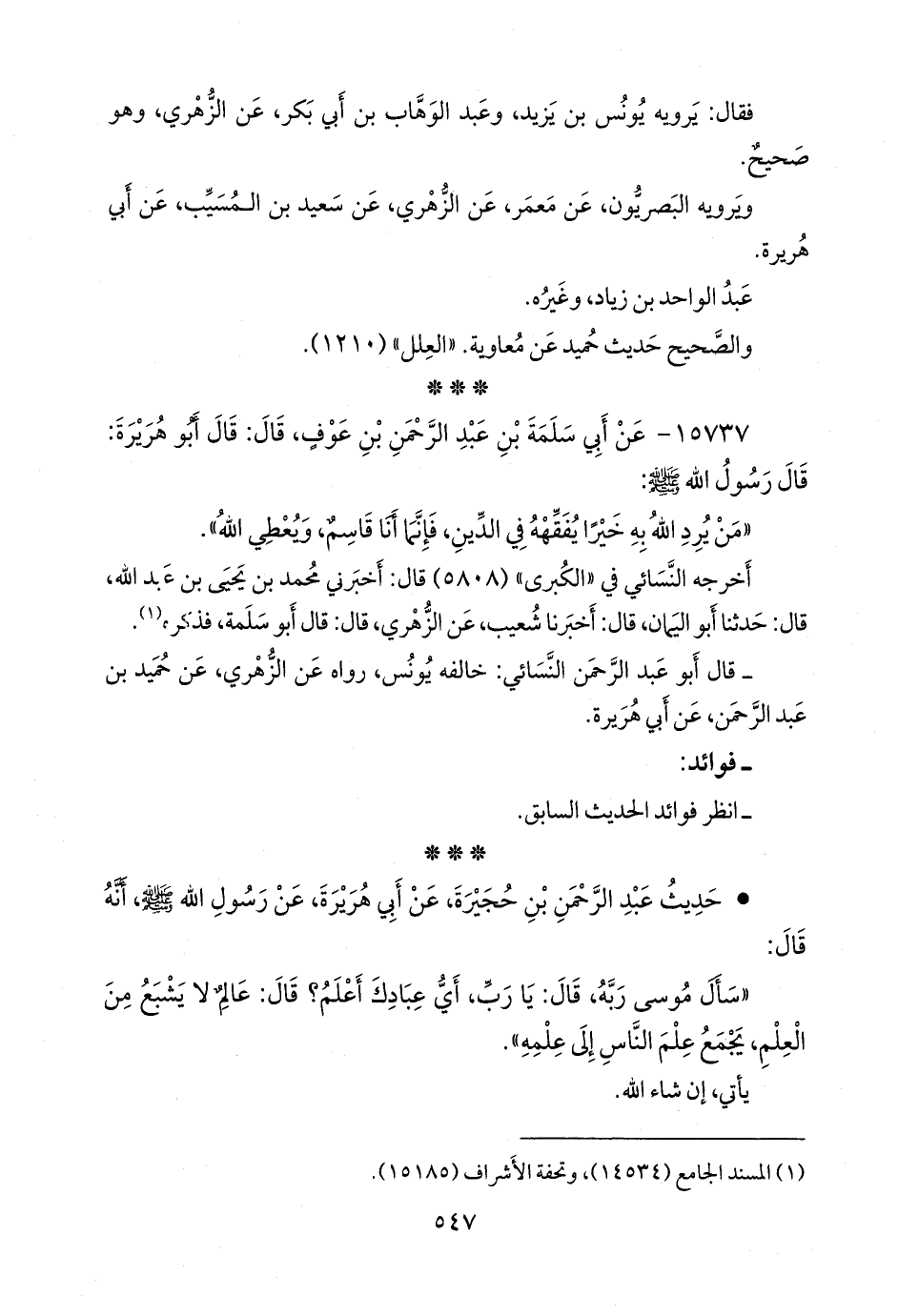 - قال أَبو عبد الرَّحمَن النَّسَائي: خالفه يونس، رواه عن الزُّهْري، عن حميد بن عبد الرَّحمَن، عن أبي هريرة.