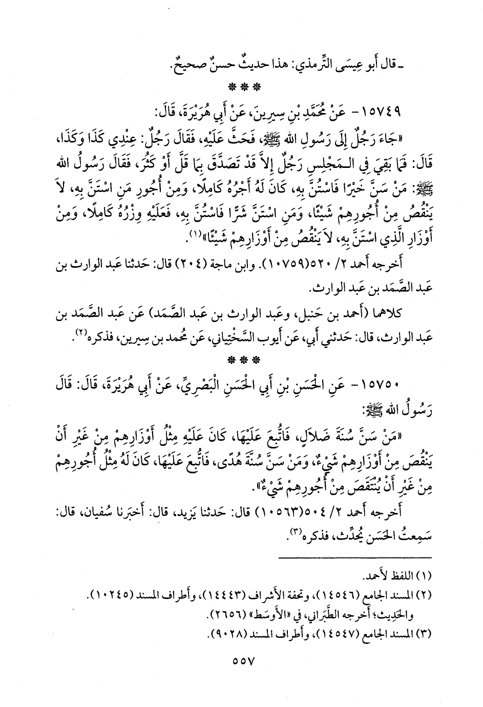 «من سن سنة ضلال، فاتبع عليها، كان عليه مثل أوزارهم من غير أن ينقص من أوزارهم شيء، ومن سن سنة هدى، فاتبع عليها، كان له مثل أجورهم من غير أن ينتقص من أجورهم شيء».