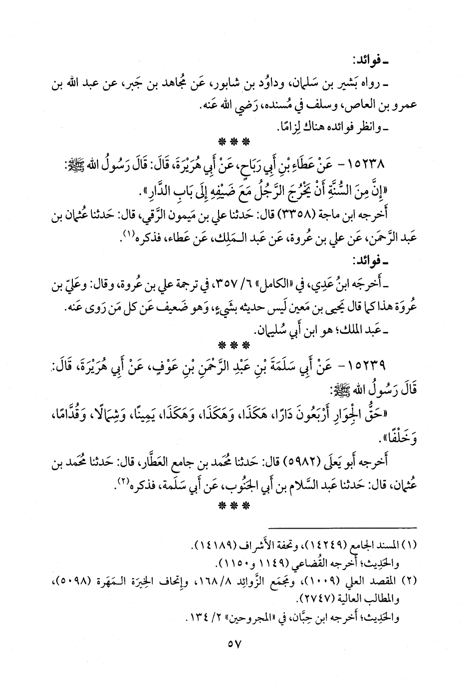 (¬١) المقصد العَلي (١٠٠٩)، ومَجمَع الزوائد ٨/ ١٦٨، وإتحاف الخِيرَة المَهَرة (٥٠٩٨)، والمطالب العالية (٢٧٤٧).