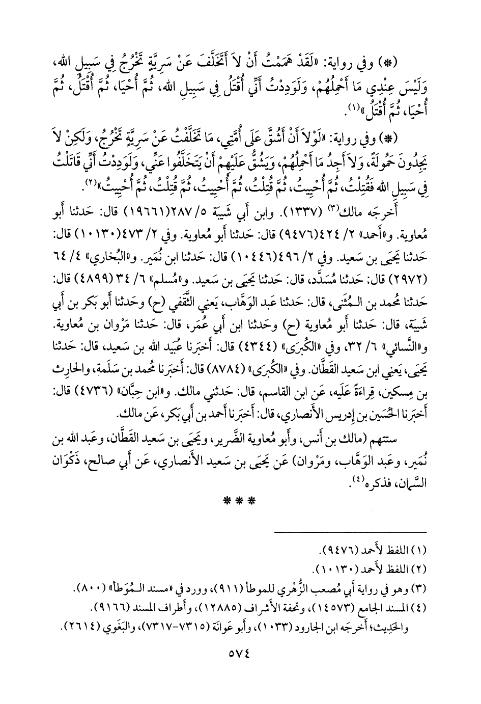 أخرجه مالك (¬١) (١٣٣٧). وابن أبي شَيبة (١٩٦٦١) قال: حدثنا أَبو معاوية. و «أحمد» ٢/ ٤٢٤ (٩٤٧٦) قال: حدثنا أَبو معاوية. وفي ٢/ ٤٧٣ (١٠١٣٠) قال: حدثنا يحيى بن سعيد. وفي ٢/ ٤٩٦ (١٠٤٤٦) قال: حدثنا ابن نُمير. و «البخاري» ٤/ ٦٤ (٢٩٧٢) قال: حدثنا مُسدد، قال: حدثنا يحيى بن سعيد. و «مسلم» ٦/ ٣٤ (٤٨٩٩) قال: حدثنا محمد بن المثنى، قال: حدثنا عبد الوَهَّاب، يعني الثقفي (ح) وحدثنا أَبو بكر بن أبي شيبة، قال: حدثنا أَبو معاوية (ح) وحدثنا ابن أبي عمر، قال: حدثنا مروان بن معاوية. و «النَّسَائي» ٦/ ٣٢، وفي «الكبرى» (٤٣٤٤) قال: أخبرنا عُبيد الله بن سعيد، قال: حدثنا يحيى، يعني ابن سعيد القطان. وفي «الكبرى» (٨٧٨٤) قال: أخبرنا محمد بن سلمة، والحارث بن مسكين، قراءة عليه، عن ابن القاسم، قال: حدثني مالك. و «ابن حِبَّان» (٤٧٣٦) قال: أخبرنا الحسين بن إدريس الأَنصاري، قال: أخبرنا أحمد بن أَبي بكر، عن مالك.