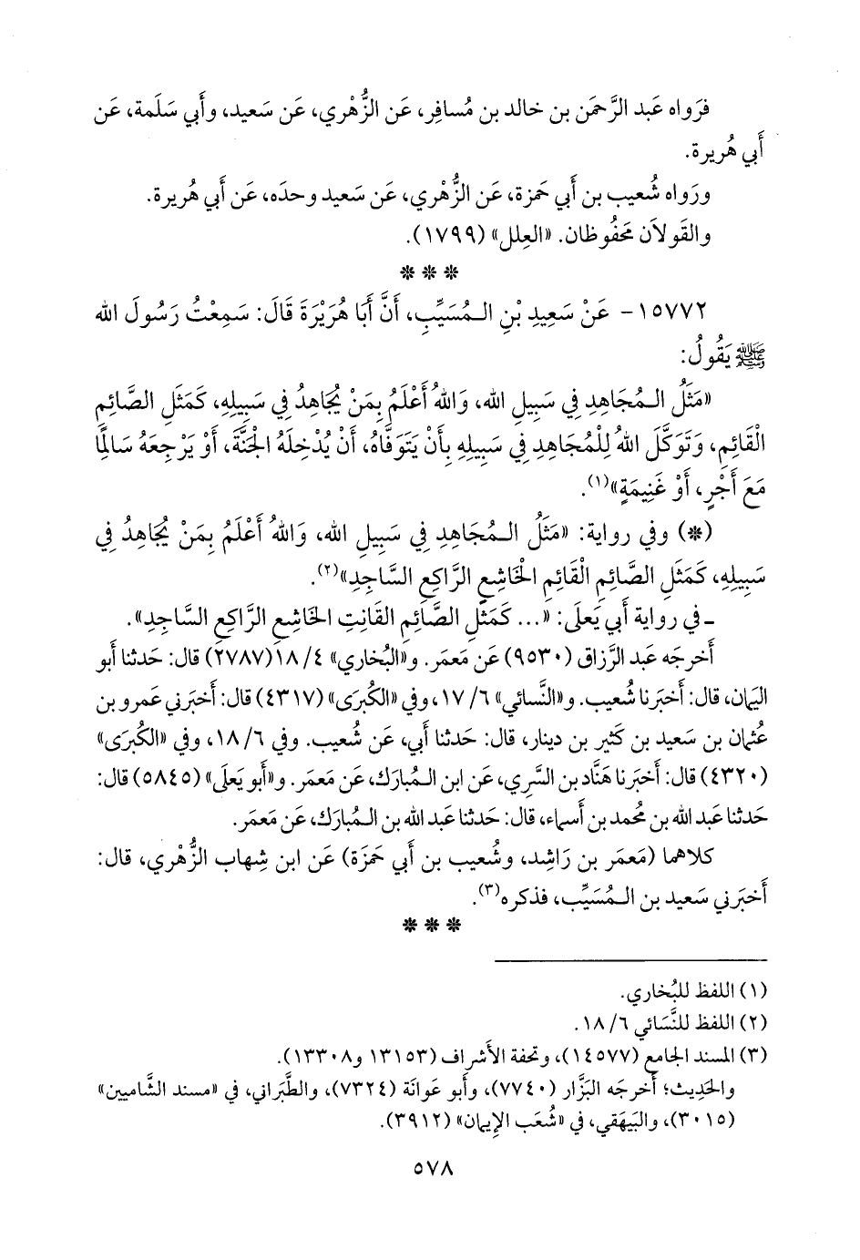 (¬٣) المسند الجامع (١٤٥٧٧)، وتحفة الأشراف (١٣١٥٣ و ١٣٣٠٨).