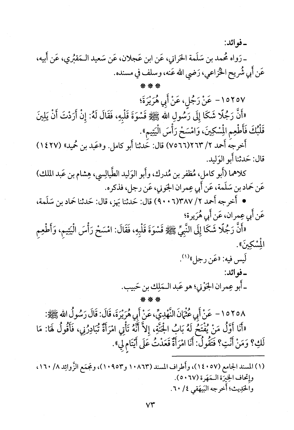 (¬١) المسند الجامع (١٤٠٥٧)، وأطراف المسند (١٠٨٦٣ و ١٠٩٥٣)، ومَجمَع الزوائد ٨/ ١٦٠، وإتحاف الخِيرَة المَهَرة (٥٠٦٧).