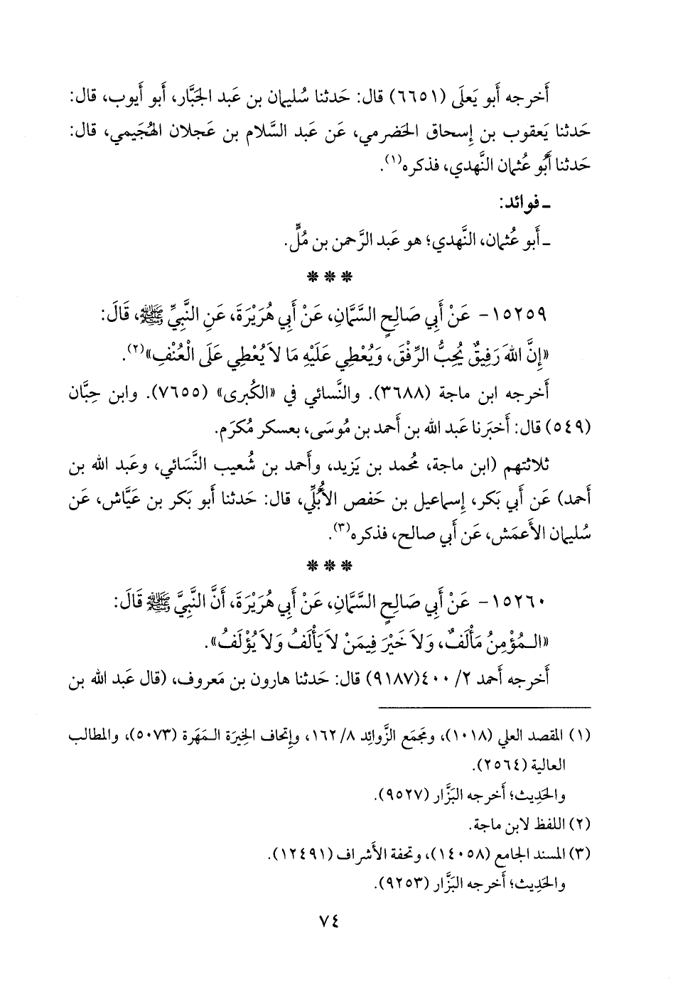 (¬١) المسند الجامع (١٤٠٥٩)، وأطراف المسند (٩٢٢٩)، ومَجمَع الزوائد ٨/ ٨٧ و ١٠/ ٢٧٣.
