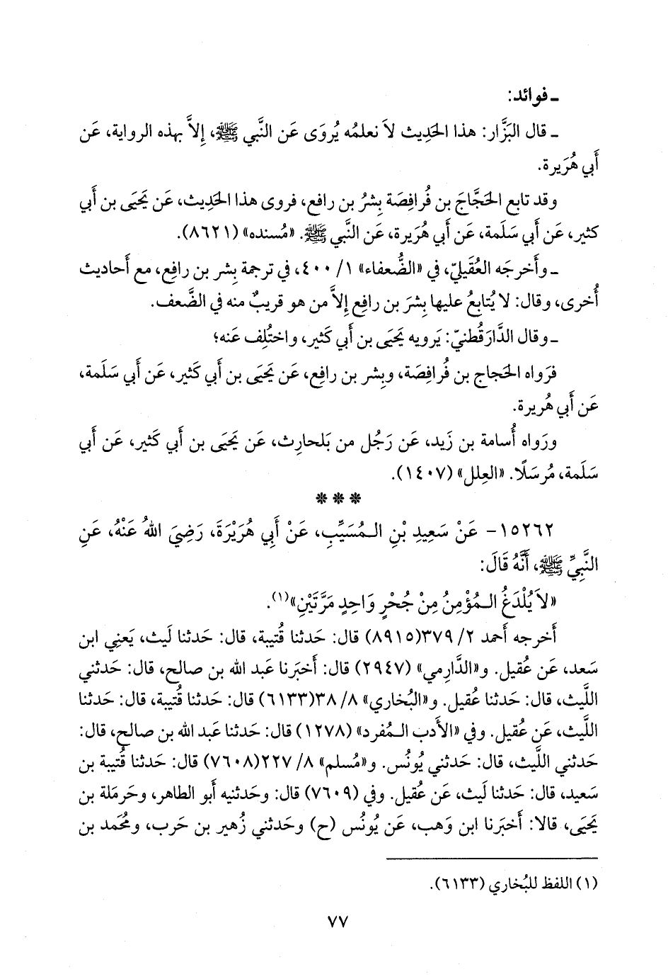 ١٥٢٦٢ - عن سعيد بن المُسَيب، عن أبي هريرة، رضي الله عنه، عن النبي صَلى الله عَليه وسَلم أنه قال: