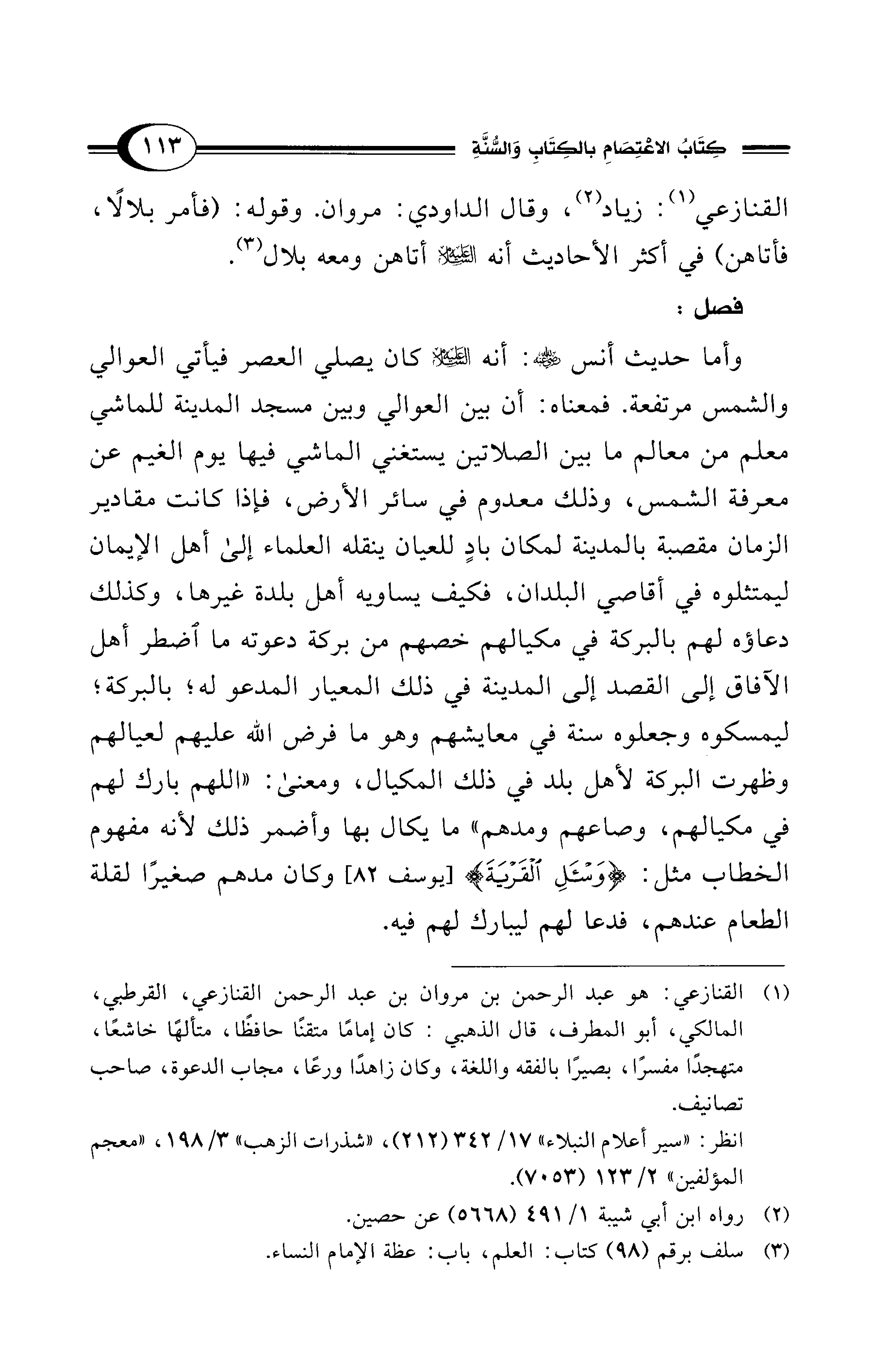 (¬1) القنازعي: هو عبد الرحمن بن مروان بن عبد الرحمن القنازعي، القرطبي، المالكي، أبو المطرف، قال الذهبي: كان إمامًّا متقنًا حافظًا، متألهًا خاشعًا، متهجدًا مفسرًا، بصيرًا بالفقه واللغة، وكان زاهدًا ورعًا، مجاب الدعوة، صاحب تصانيف.