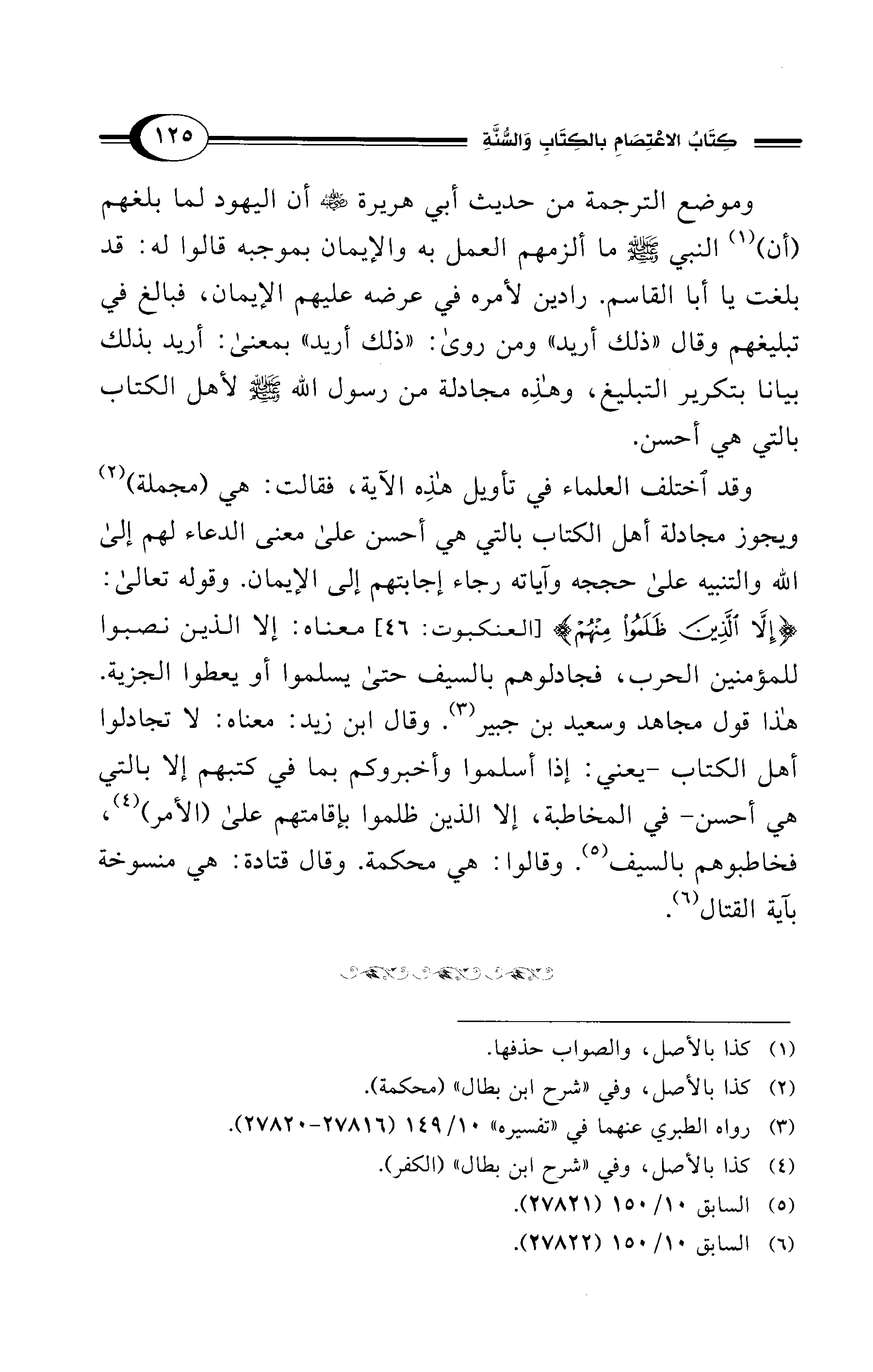 وقد اختلف العلماء في تأويل هذه الآية، فقالت: هي (مجملة) (¬2) ويجوز مجادلة أهل الكتاب بالتي هي أحسن على معنى الدعاء لهم إلى الله والتنبيه على حججه وآياته رجاء إجابتهم إلى الإيمان. وقوله تعالى: {إِلَّا الَّذِينَ ظَلَمُوا مِنْهُمْ} [العنكبوت: 46] معناه: إلا الذين نصبوا للمؤمنين الحرب، فجادلوهم بالسيف حتى يسلموا أو يعطوا الجزية. هذا قول مجاهد وسعيد بن جبير (¬3). وقال ابن زيد: معناه: لا تجادلوا أهل الكتاب -يعني: إذا أسلموا وأخبروكم بما في كتبهم إلا بالتي هي أحسن- في المخاطبة، إلا الذين ظلموا بإقامتهم علي (الأمر) (¬4)، فخاطبوهم بالسيف (¬5). وقالوا: هي محكمة. وقال قتادة: هي منسوخة بآية القتال (¬6).
