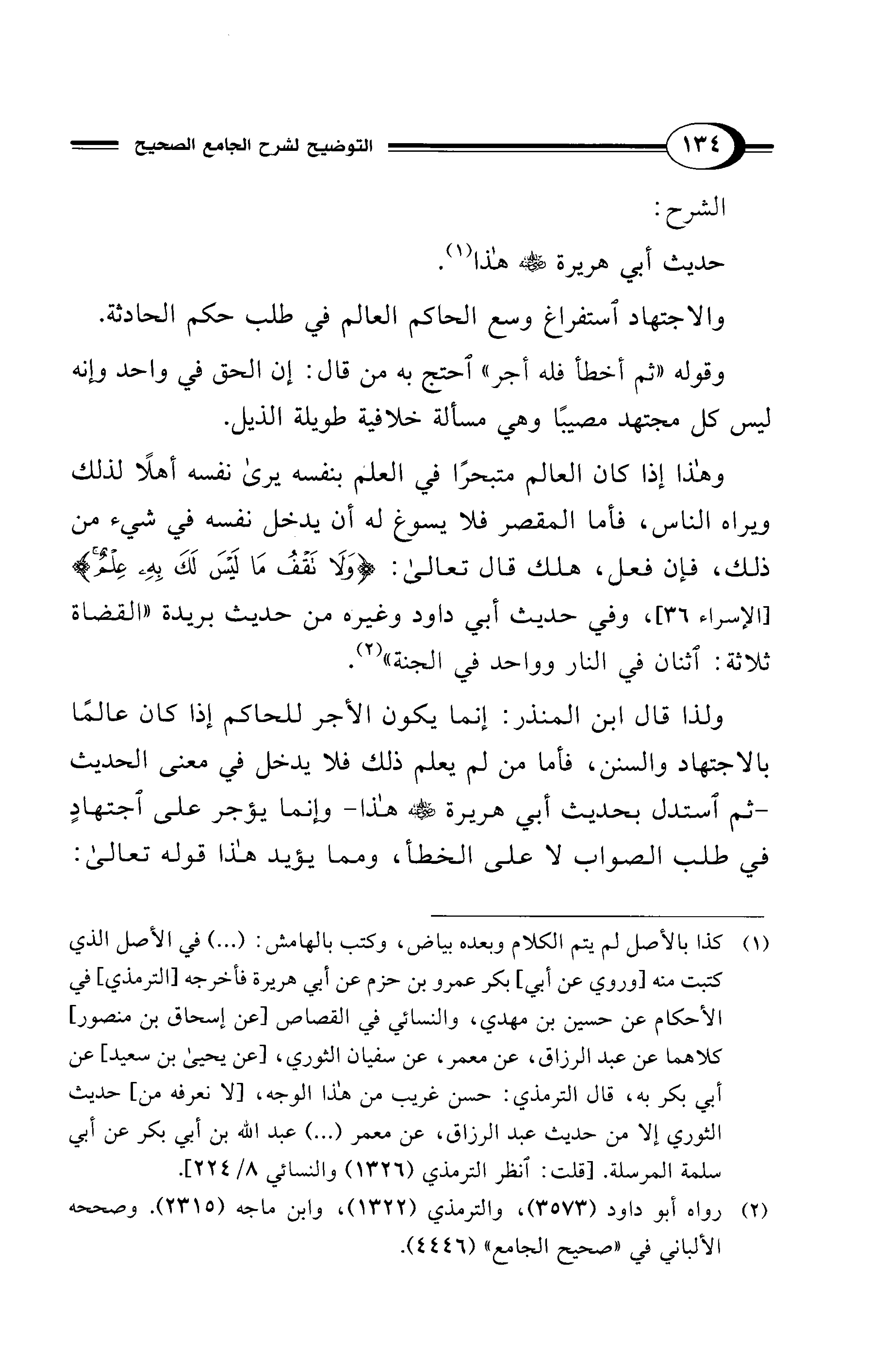 وهذا إذا كان العالم متبحرًا في العلم بنفسه يري نفسه أهلًا لذلك ويراه الناس، فأما المقصر فلا يسوغ له أن يدخل نفسه في شيء من ذلك، فإن فعل، هلك قال تعالى: {وَلَا تَقْفُ مَا لَيْسَ لَكَ بِهِ عِلْمٌ} [الإسراء: 36]، وفي حديث أبي داود وغيره من حديث بريدة "القضاة ثلاثة: اثنان في النار وواحد في الجنة" (¬2).