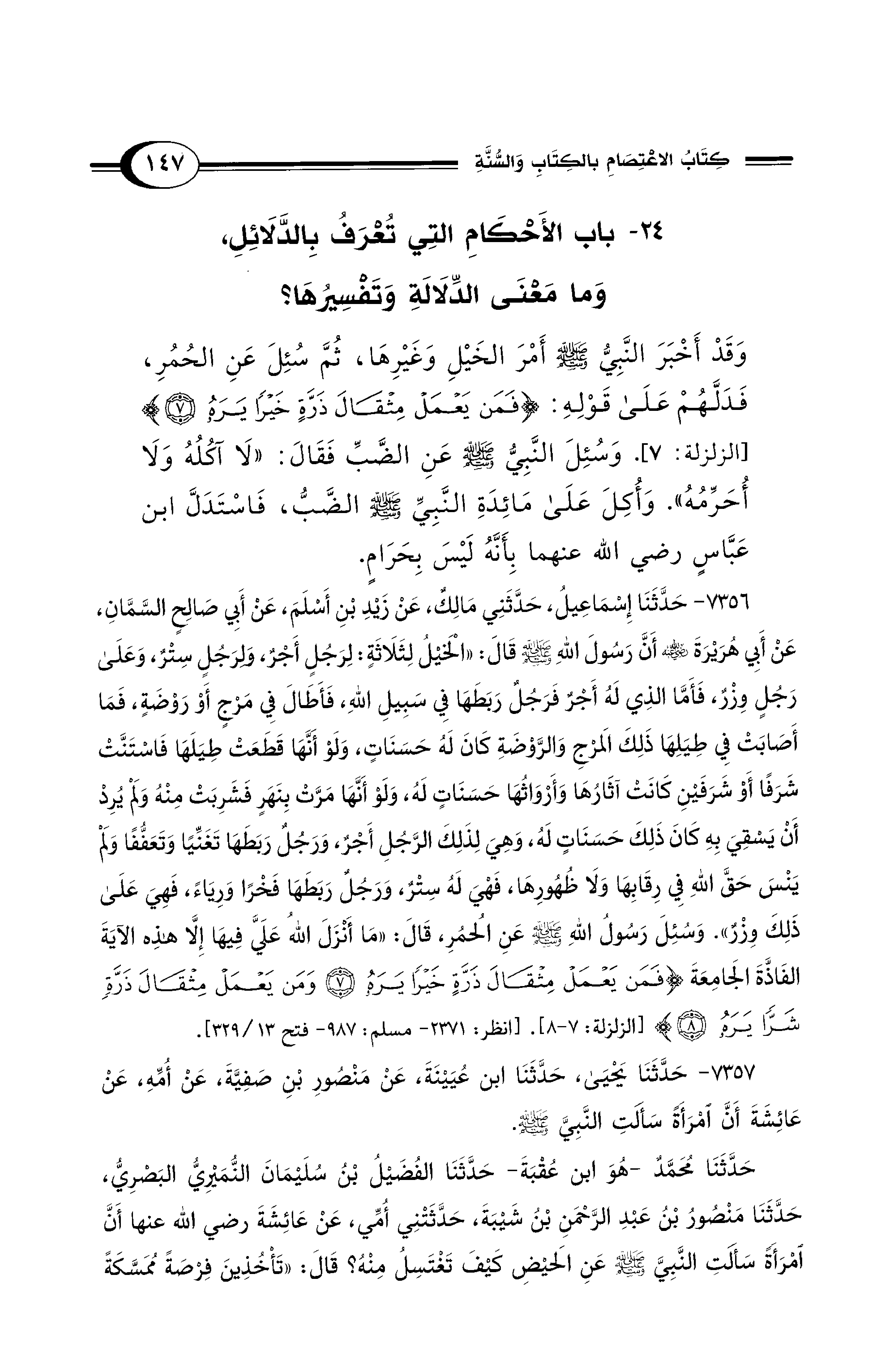 24 - باب الأَحْكَامِ الَّتِي تُعْرَفُ بِالدَّلاَئِلِ، وَكَيْفَ مَعْنَى الدِّلاَلَةِ وَتَفْسِيرِهَا؟