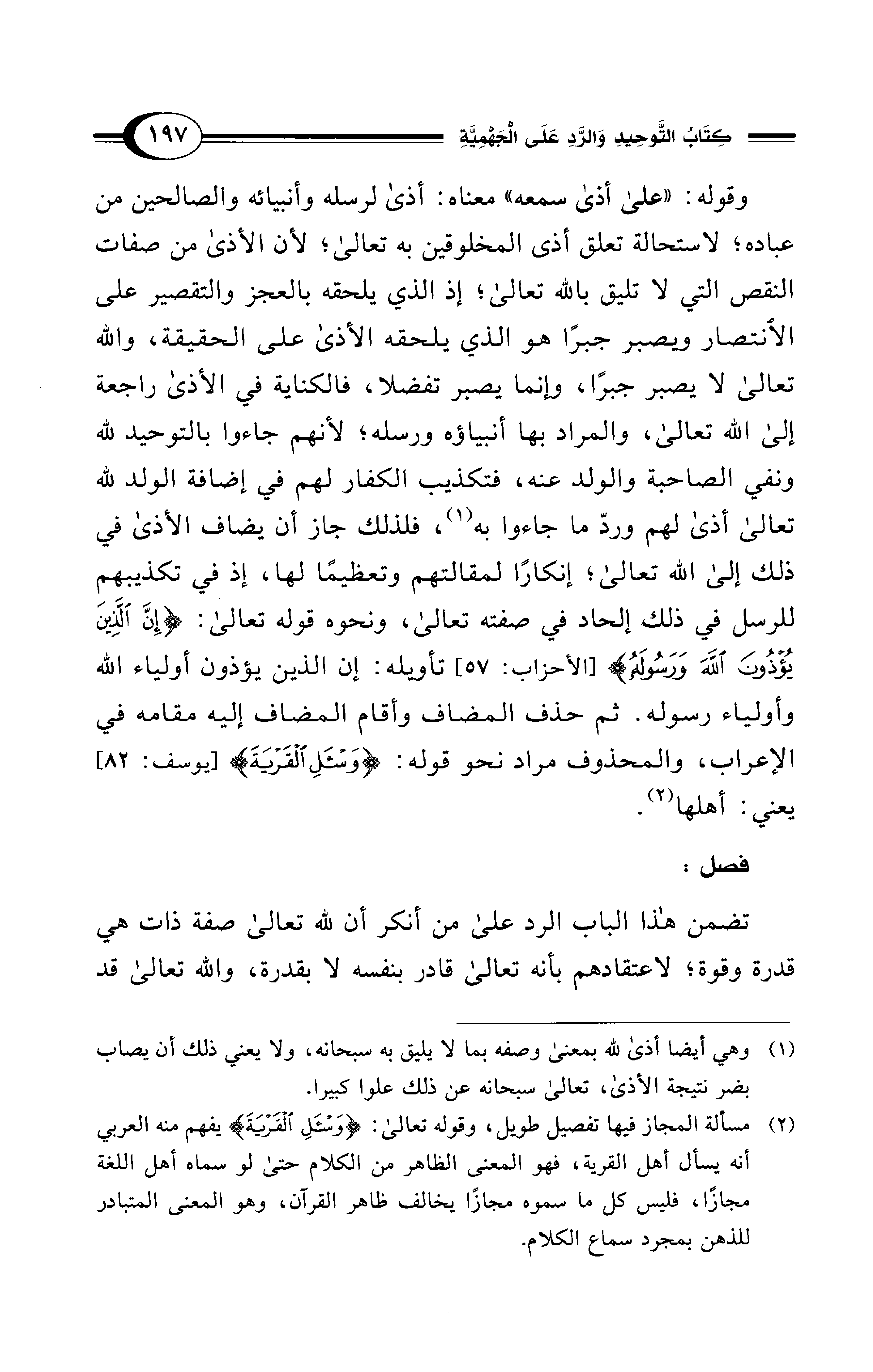 تضمن هذا الباب الرد على من أنكر أن لله تعالى صفة ذات هي قدرة وقوة؛ لاعتقادهم بأنه تعالى قادر بنفسه لا بقدرة، والله تعالى قد