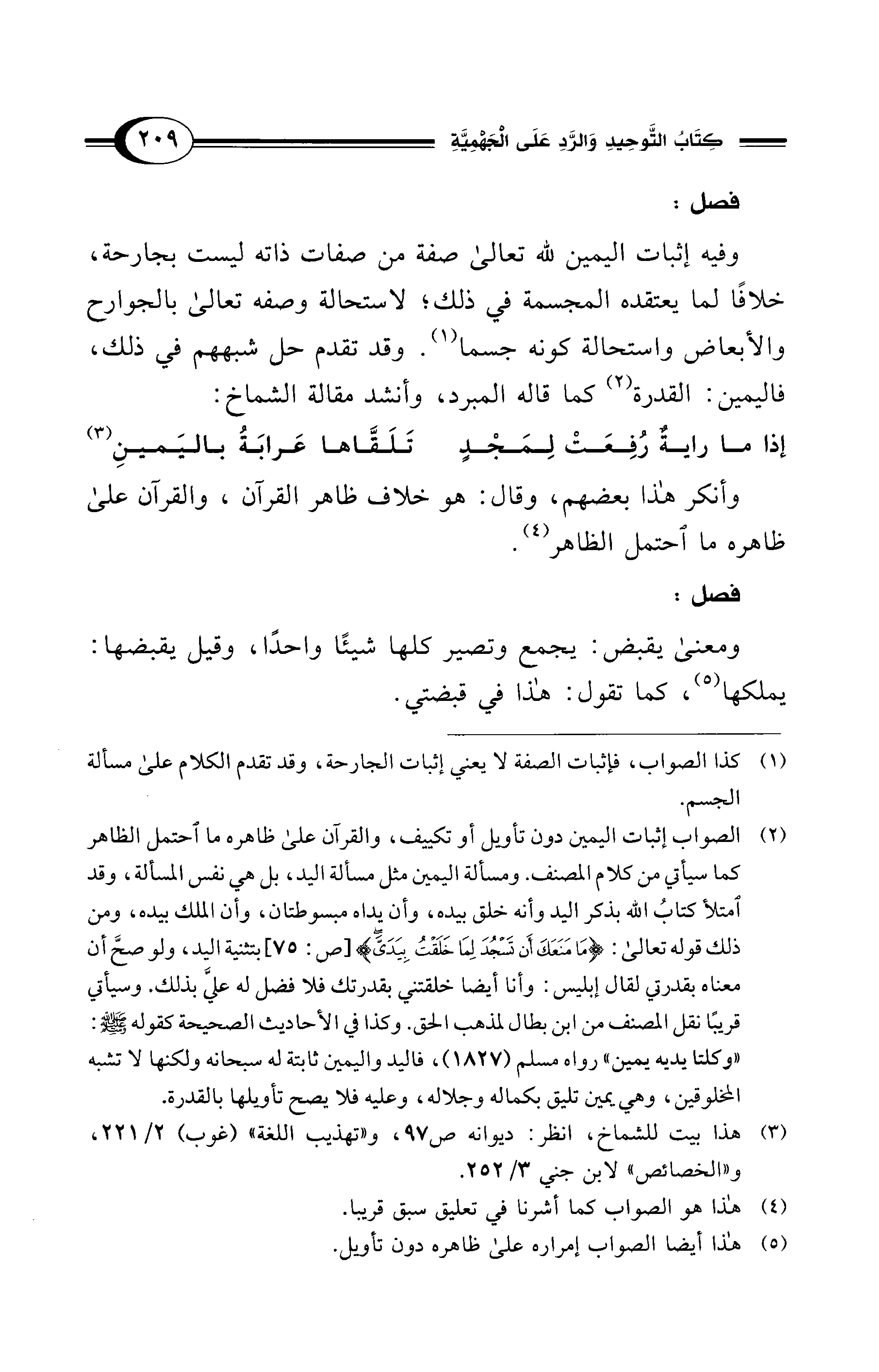 (¬1) كذا الصواب، فإثبات الصفة لا يعني إثبات الجارحة، وقد تقدم الكلام على مسألة الجسم.