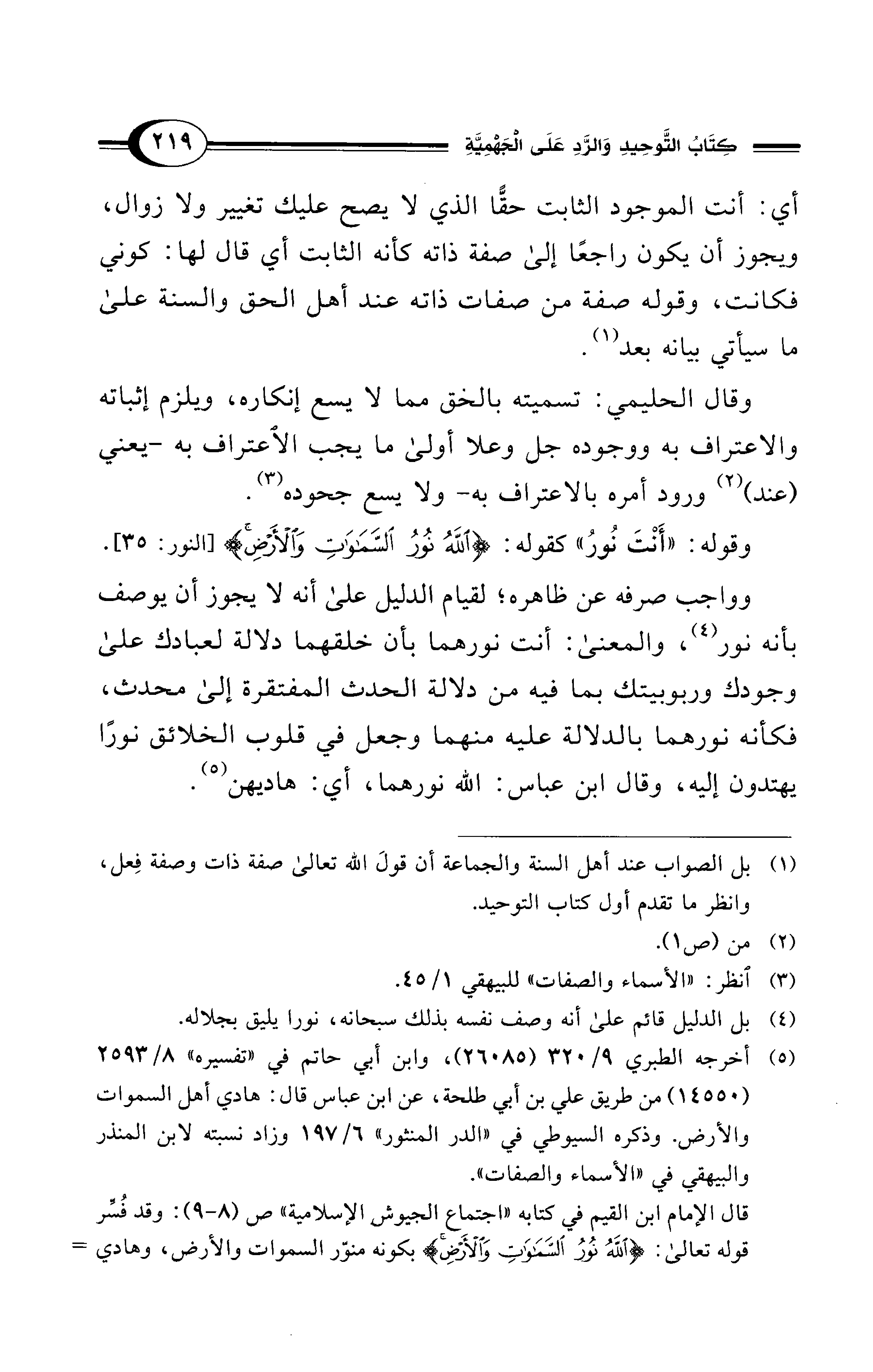 (¬4) بل الدليل قائم على أنه وصف نفسه بذلك سبحانه، نورا يليق بجلاله.