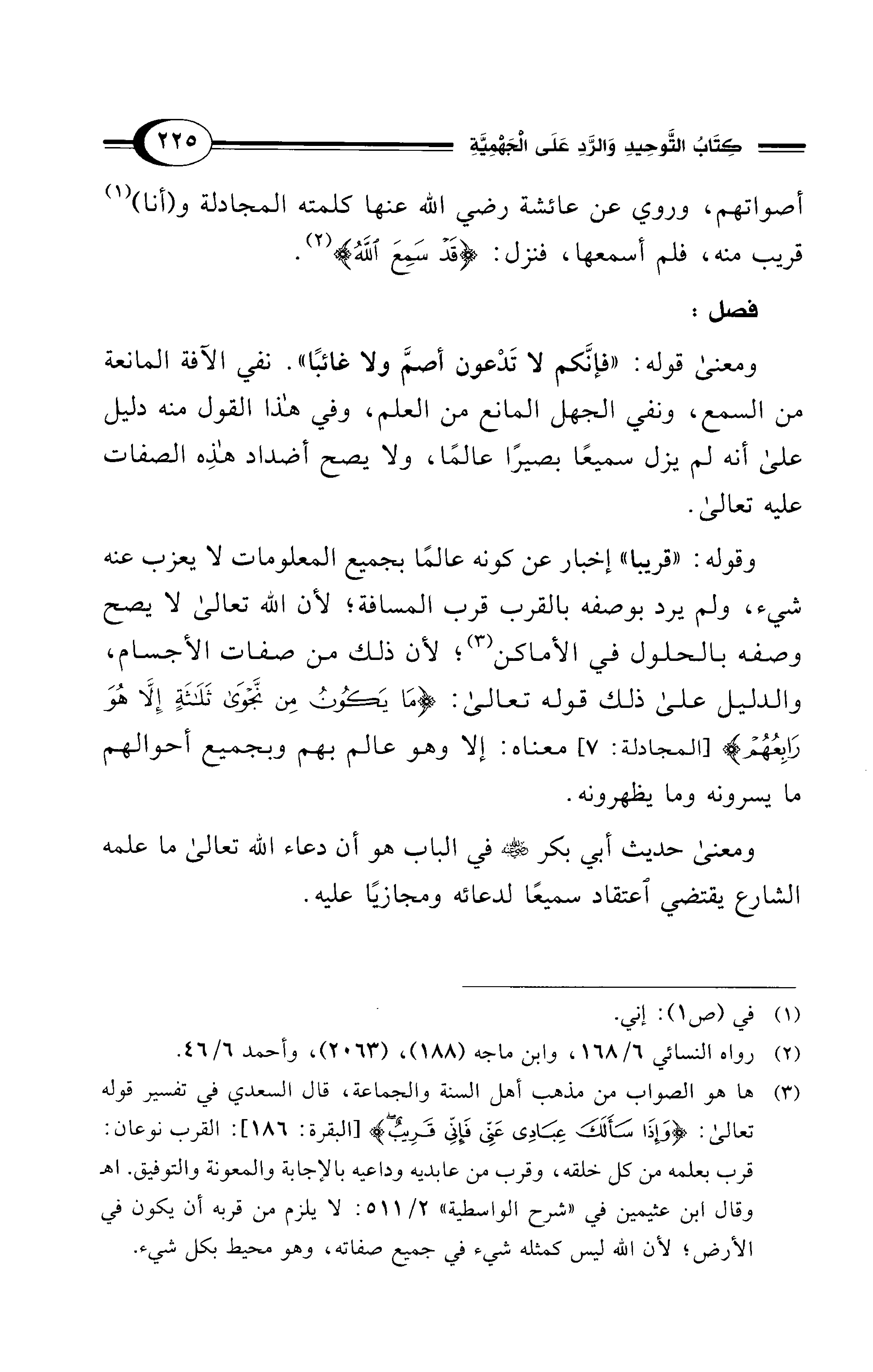 (¬3) ها هو الصواب من مذهب أهل السنة والجماعة، قال السعدي في تفسير قوله تعالى: {وَإِذَا سَأَلَكَ عِبَادِي عَنِّي فَإِنِّي قَرِيبٌ} [البقرة: 186]: القرب نوعان: قرب بعلمه من كل خلقه، وقرب من عابديه وداعيه بالإجابة والمعونة والتوفيق. اهـ وقال ابن عثيمين في "شرح الواسطية" 2/ 511: لا يلزم من قربه أن يكون في الأرض؛ لأن الله ليس كمثله شيء في جميع صفاته، وهو محيط بكل شيء.