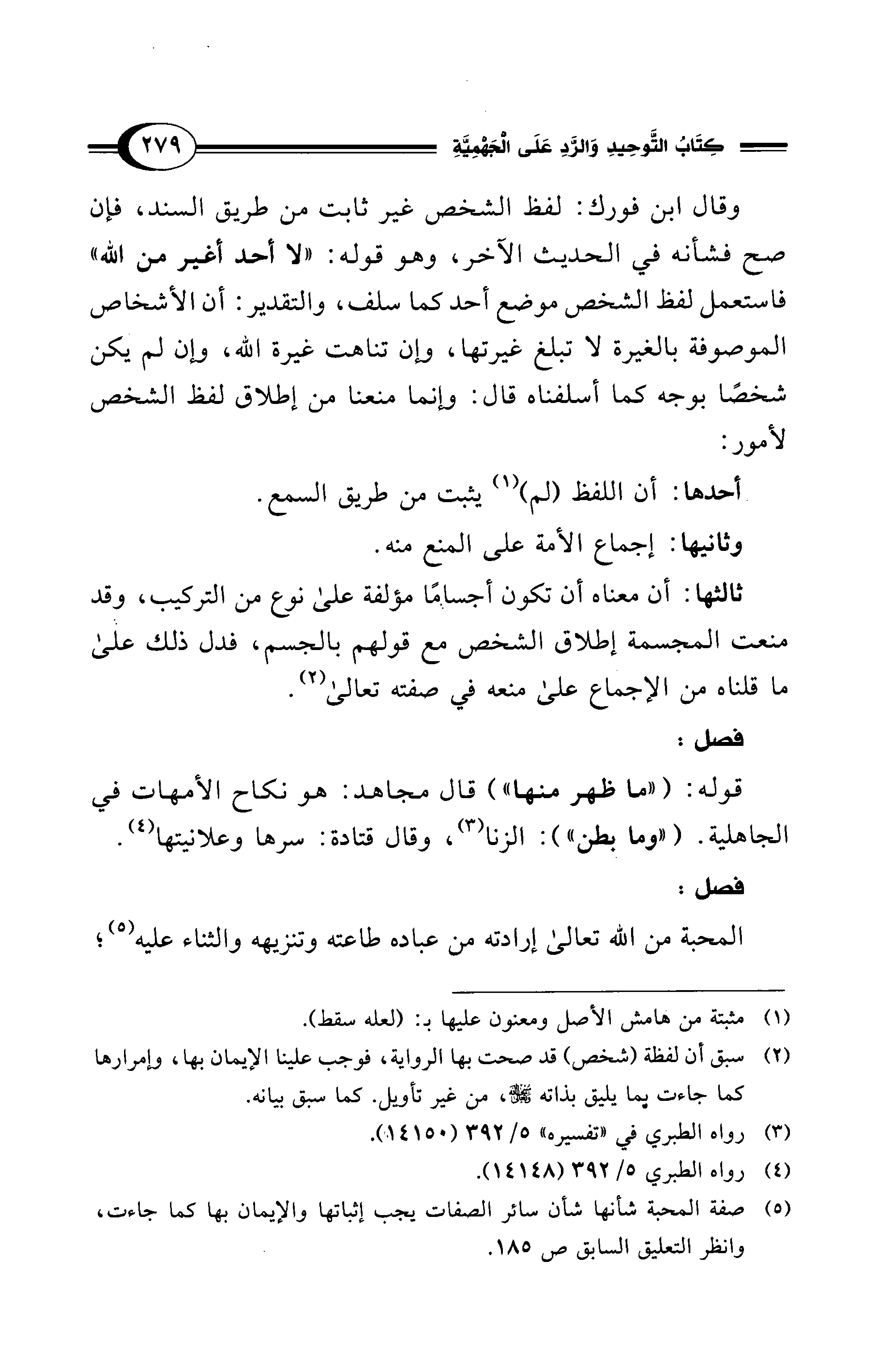 (¬5) صفة المحبة شأنها شأن سائر الصفات يجب إثباتها والإيمان بها كما جاءت، وانظر التعليق السابق ص185.