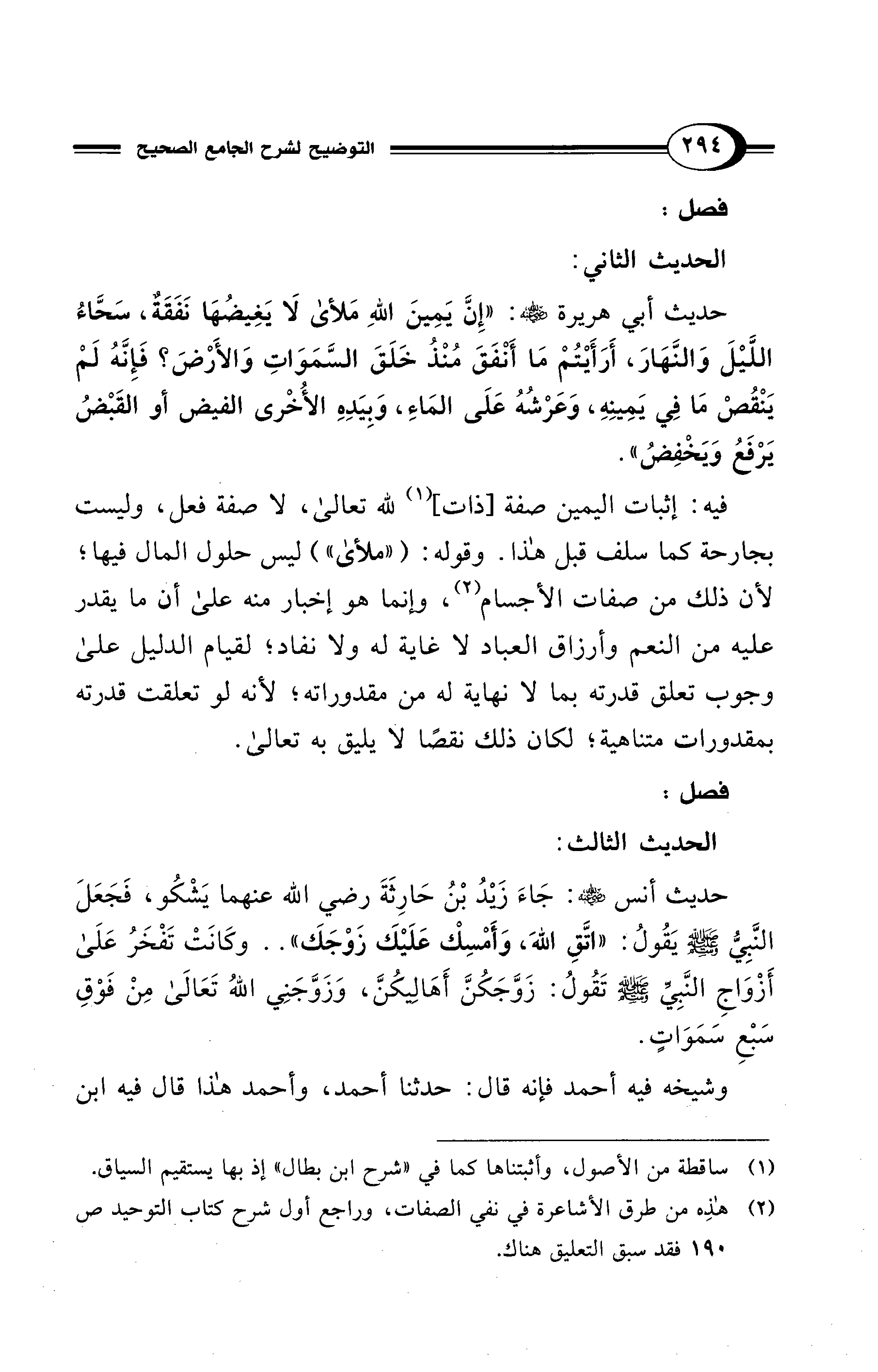 (¬2) هذِه من طرق الأشاعرة في نفي الصفات، وراجع أول شرح كتاب التوحيد ص190 فقد سبق التعليق هناك.