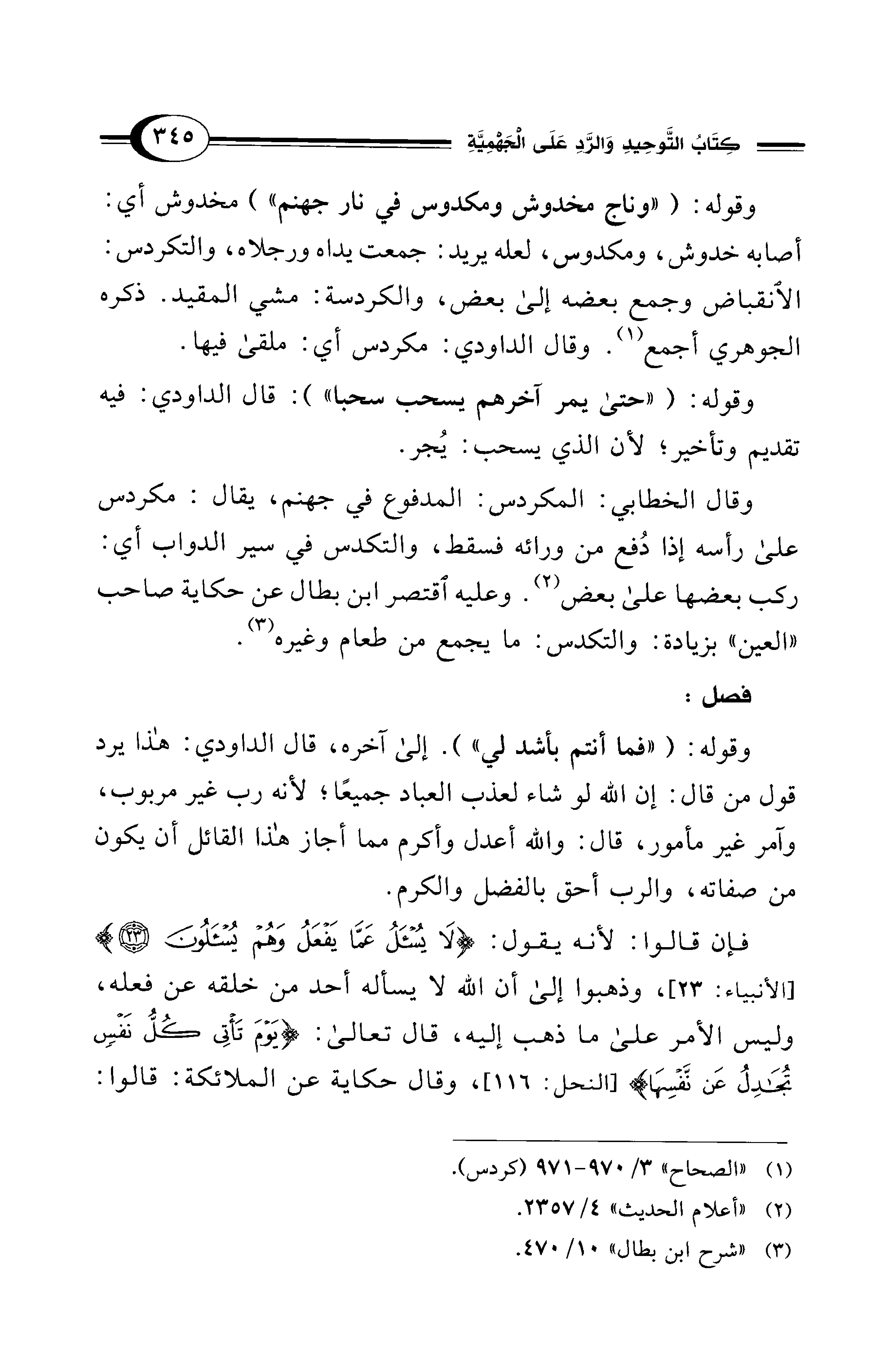وقال الخطابي: المكردس: المدفوع في جهنم، يقال: مكردس على رأسه إذا دُفع من ورائه فسقط، والتكدس في سير الدواب أي: ركب بعضها على بعض (¬2). وعليه اقتصر ابن بطال عن حكايته صاحب "العين"بزيادة: والتكدس: ما يجمع من طعام وغيره (¬3).