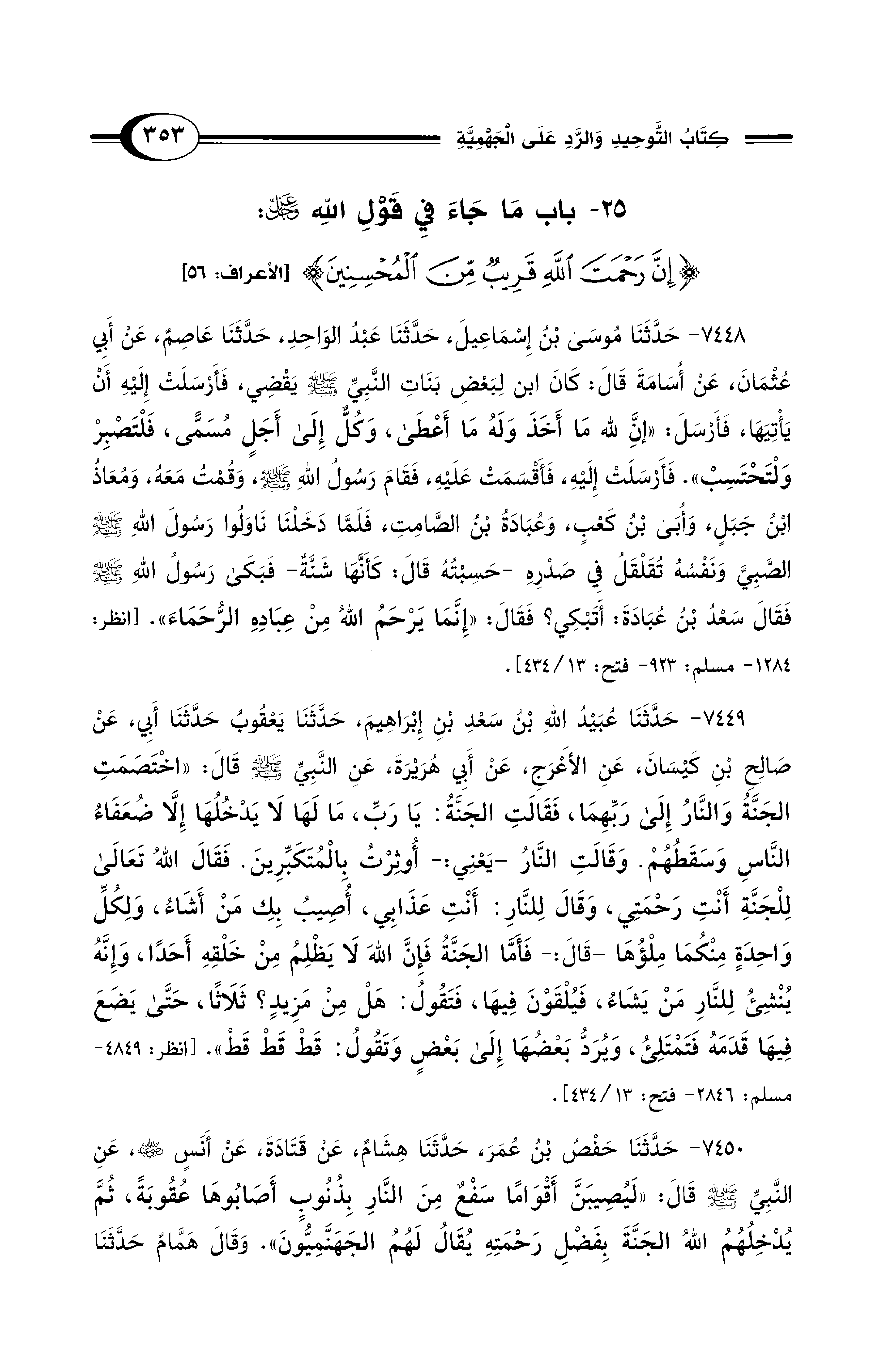 25 - باب مَا جَاءَ فِي قَوْلِ الله -عَزَّ وَجَلَّ-: {إِنَّ رَحْمَةَ اللهِ قَرِيبٌ مِنَ الْمُحْسِنِينَ} [الأعراف: 56]