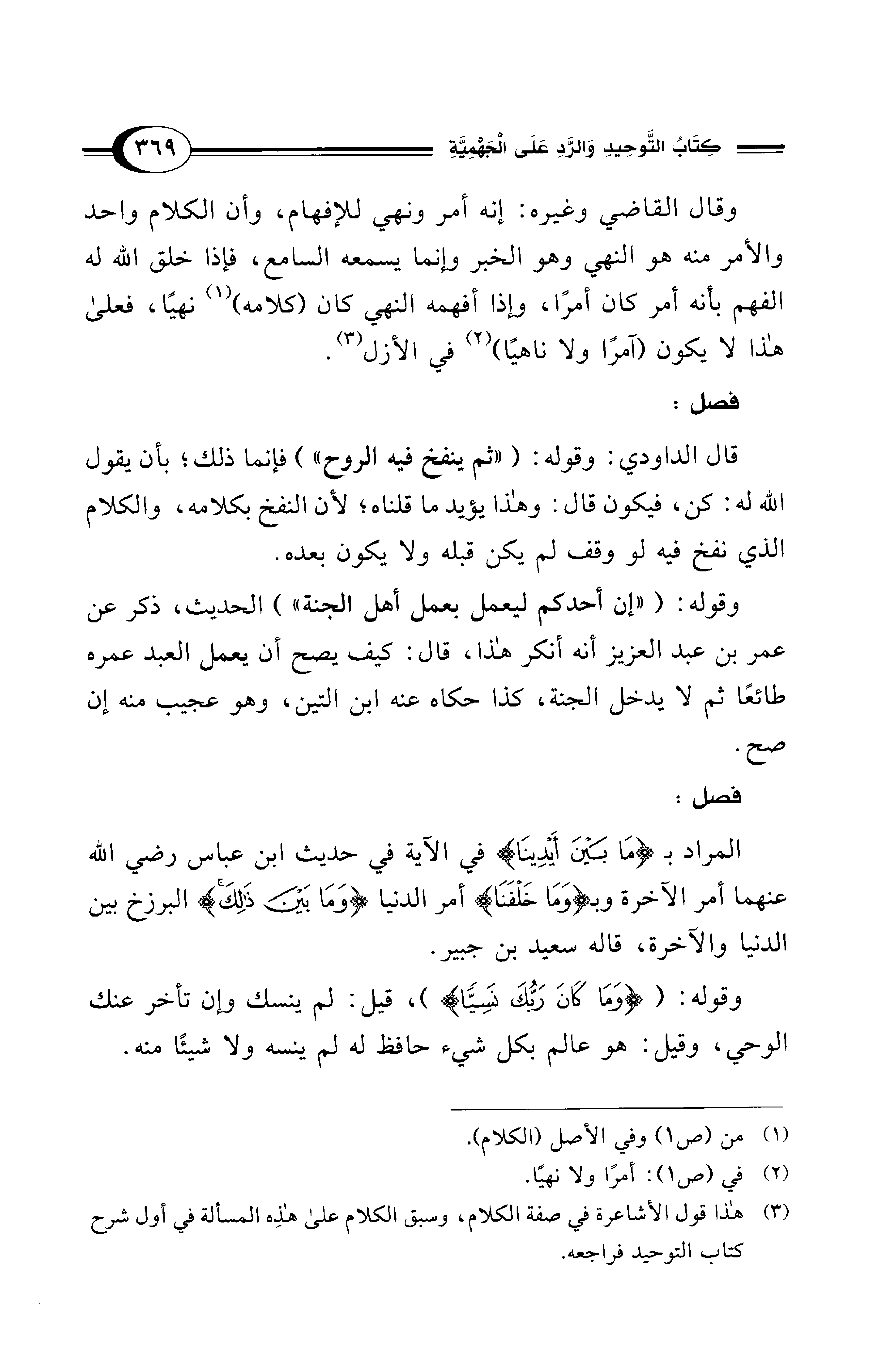 (¬3) هذا قول الأشاعرة في صفة الكلام، وسبق الكلام على هذِه المسألة في أول شرح كتاب التوحيد فراجعه.