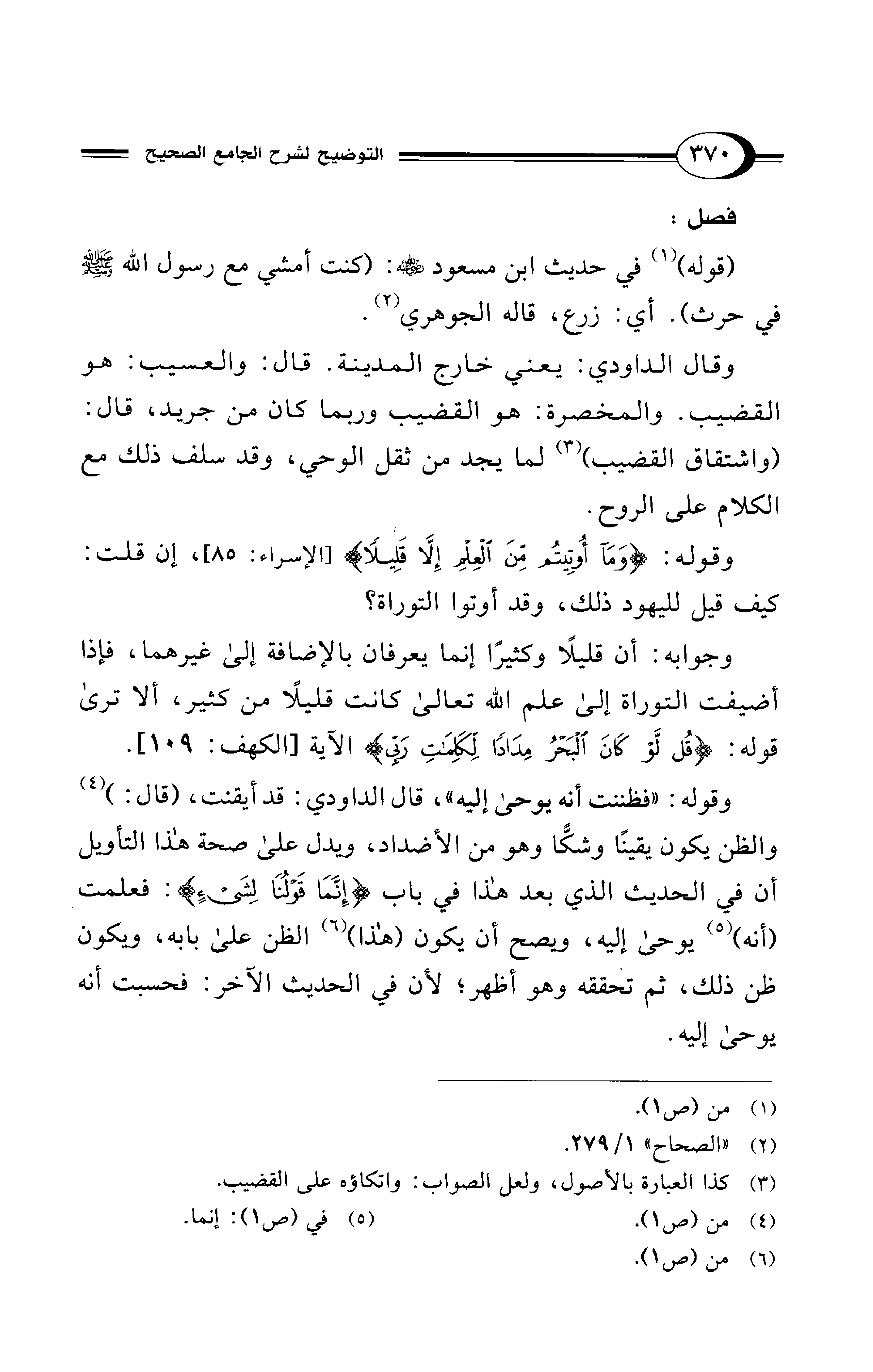 وقال الداودي: يعني خارج المدينة. قال: والعسيب: هو القضيب. والمخصرة: هو القضيب وربما كان من جريد، قال: (واشتقاق القضيب) (¬3) لما يجد من ثقل الوحي، وقد سلف ذلك مع الكلام على الروح.
