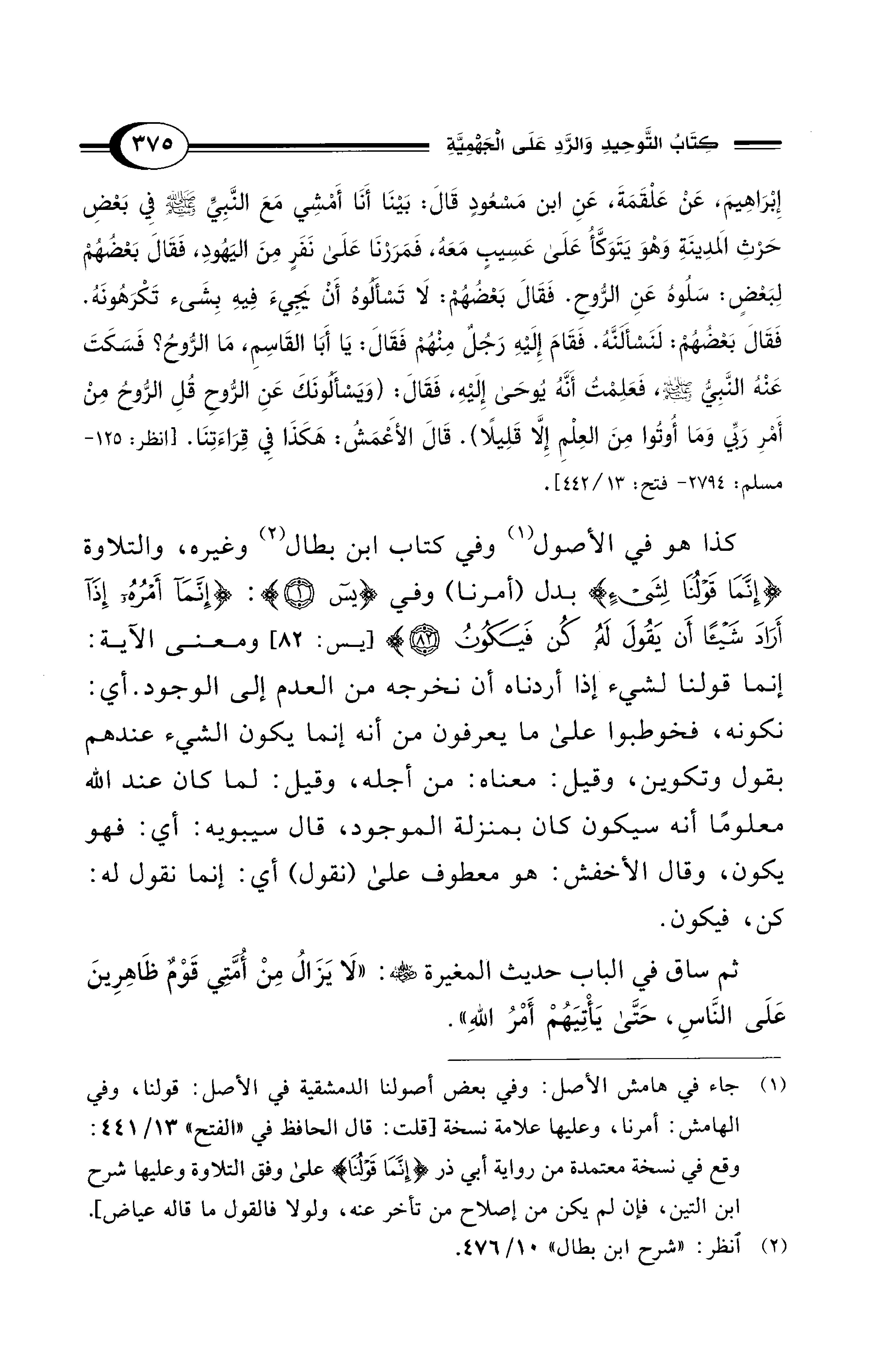 (¬1) جاء في هامش الأصل: وفي بعض أصولنا الدمشقية في الأصل: قولنا، وفي الهامش: أمرنا، وعليها علامة نسخة [قلت: قال الحافظ في "الفتح" 13/ 441: وقع في نسخة معتمدة من رواية أبي ذر {إِنَّمَا قَوْلُنَا} على وفق التلاوة وعليها شرح ابن التين، فإن لم يكن من إصلاح من تأخر عنه، ولولا فالقول ما قاله عياض].