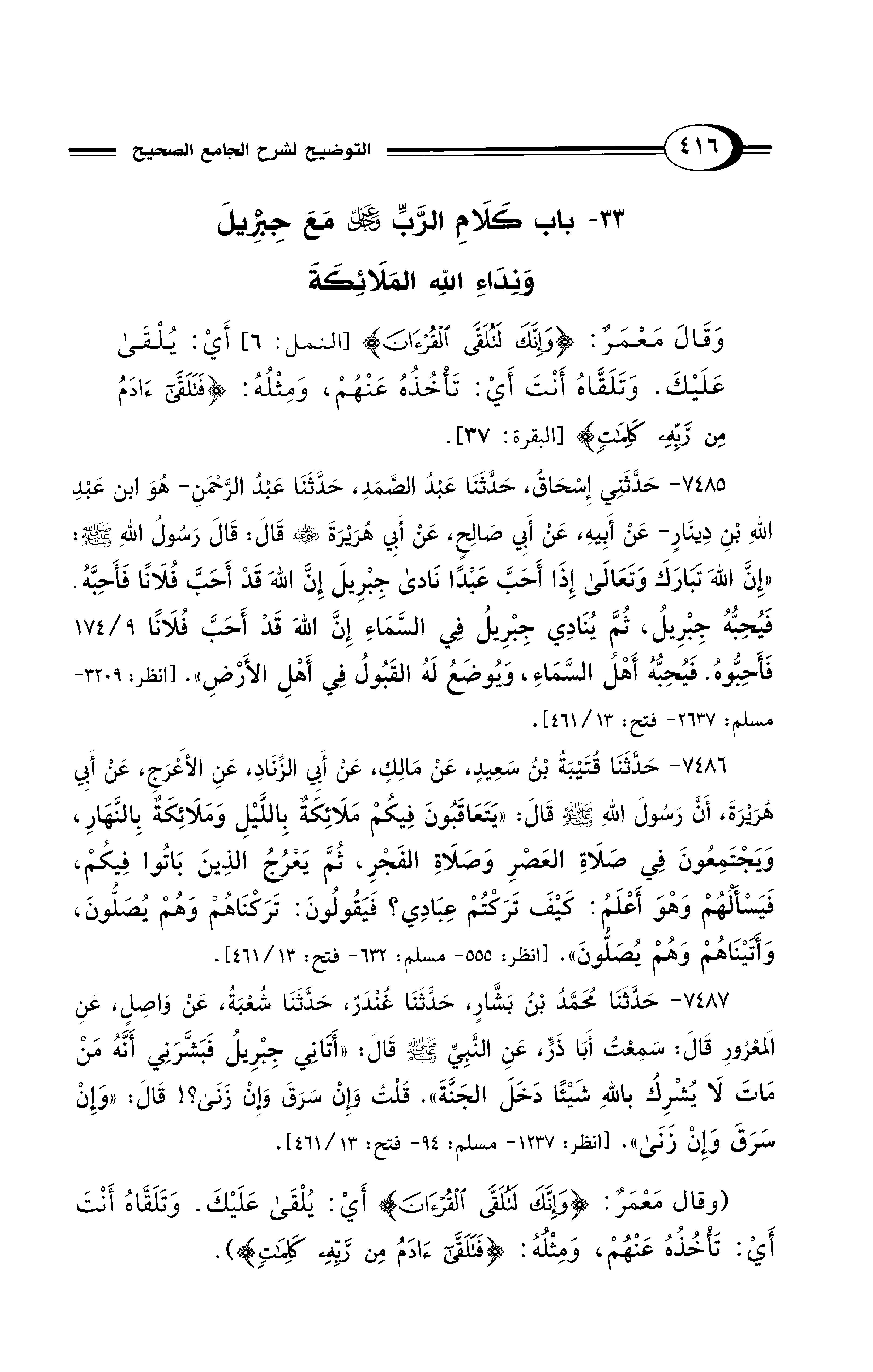 33 - باب كَلاَمِ الرَّبِّ -عَزَّ وَجَلَّ- مَعَ جِبْرِيلَ وَنِدَاءِ اللهِ المَلاَئِكَةَ