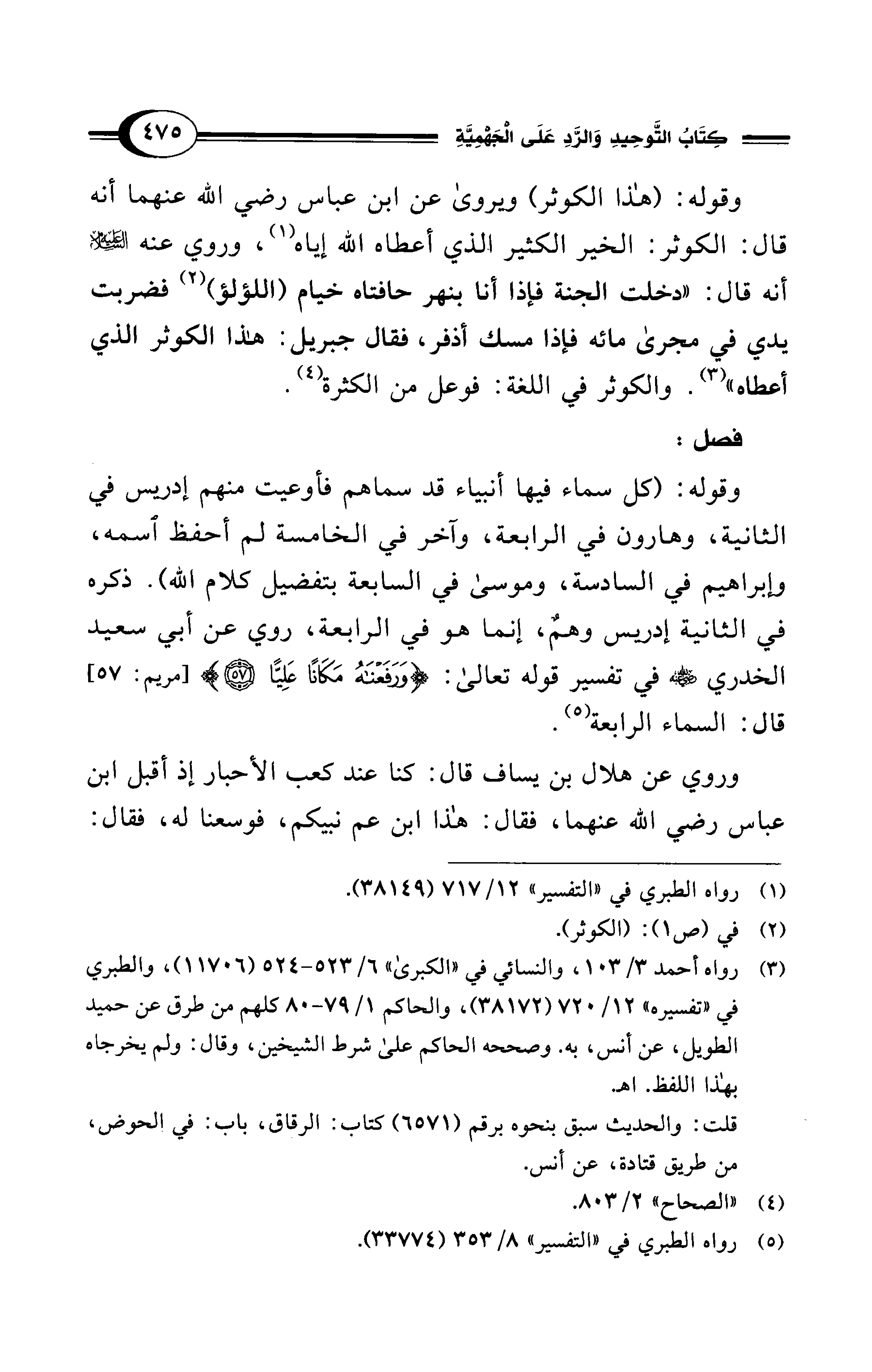 وقوله: (كل سماء فيها أنبياء قد سماهم فأوعيت منهم إدريس في الثانية، وهارون في الرابعة، وآخر في الخامسة لم أحفظ اسمه، وإبراهيم في السادسة، وموسى في السابعة بتفضيل كلام الله). ذكره في الثانية إدريس وهمٌ، إنما هو في الرابعة، روي عن أبي سعيد الخدري - رضي الله عنه - في تفسير قوله تعالى: {وَرَفَعْنَاهُ مَكَانًا عَلِيًّا} [مريم: 57] قال: السماء الرابعة (¬5).