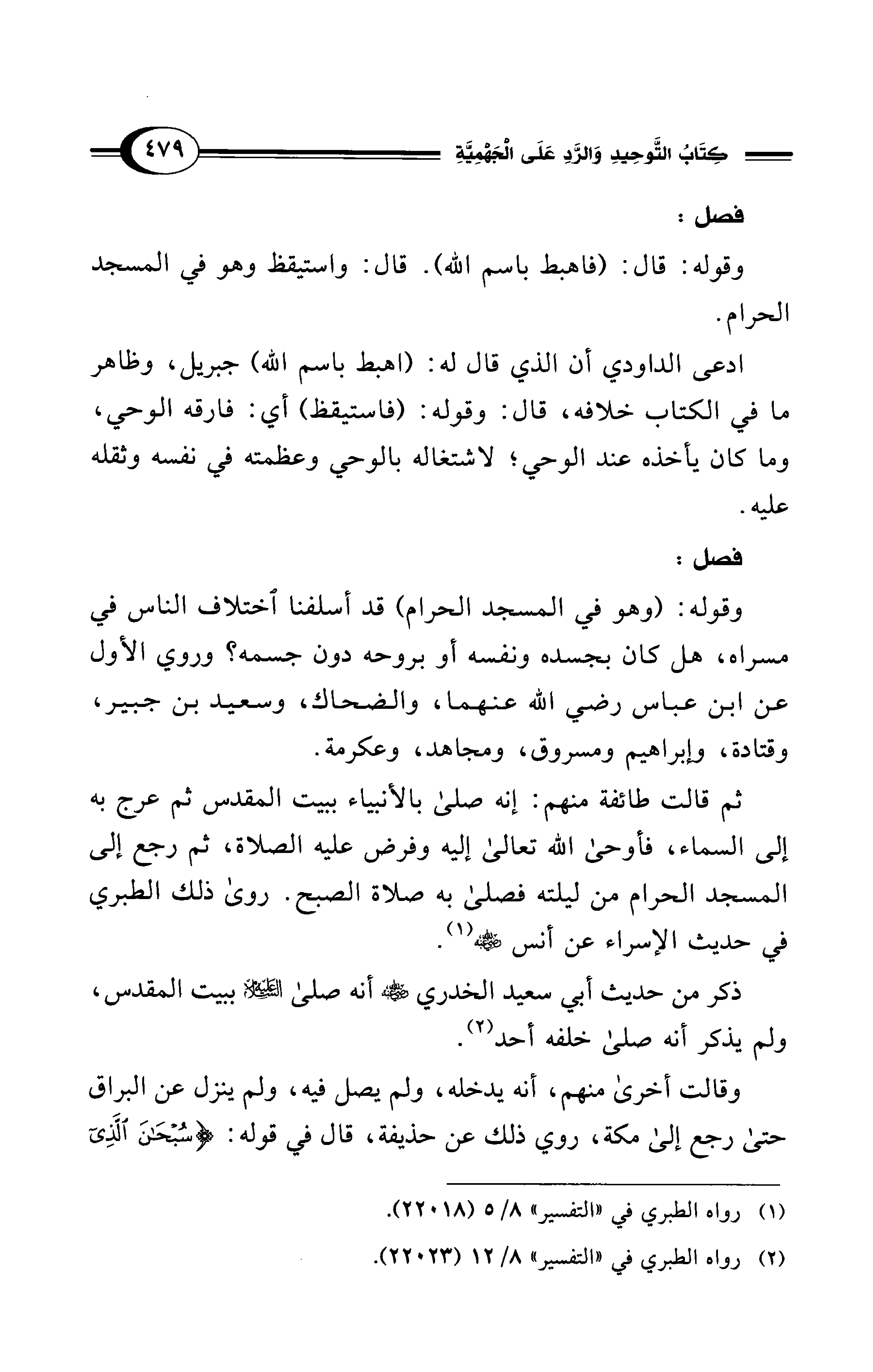ثم قالت طائفة منهم: إنه صلى بالأنبياء ببيت المقدس ثم عرج به إلى السماء، فأوحى الله تعالى إليه وفرض عليه الصلاة، ثم رجع إلى المسجد الحرام من ليلته فصل به صلاة الصبح. روى ذلك الطبري في حديث الإسراء عن أنس - رضي الله عنه - (¬1).